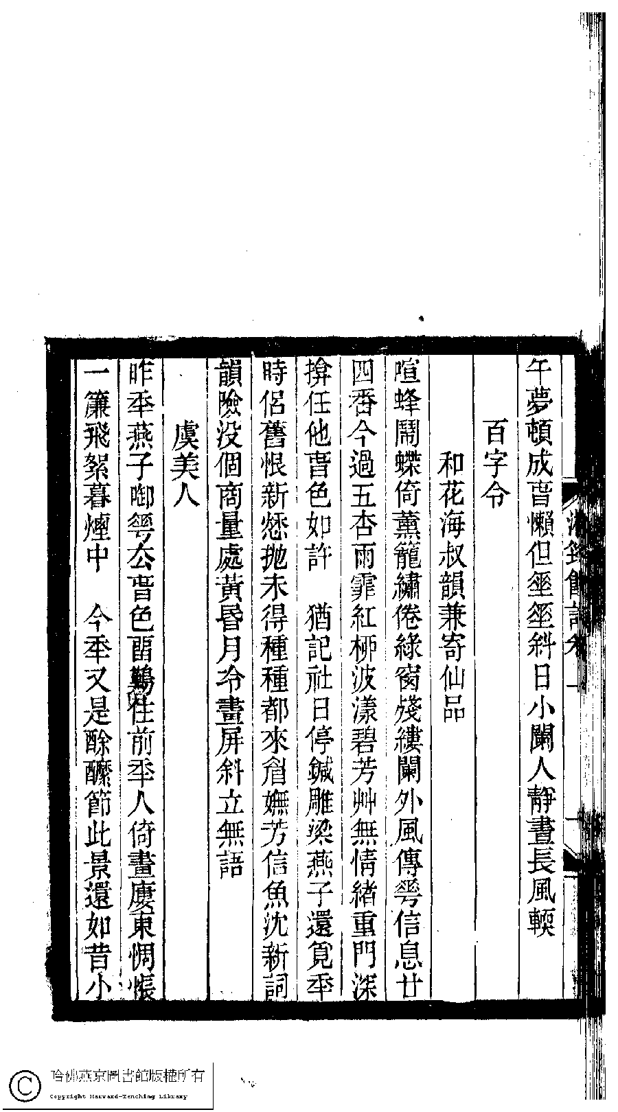 | 原書: 小檀欒室彙刻閨秀詞﹕十集一百種一百卷(清徐乃昌輯): 湘雲館詞﹕二卷 |