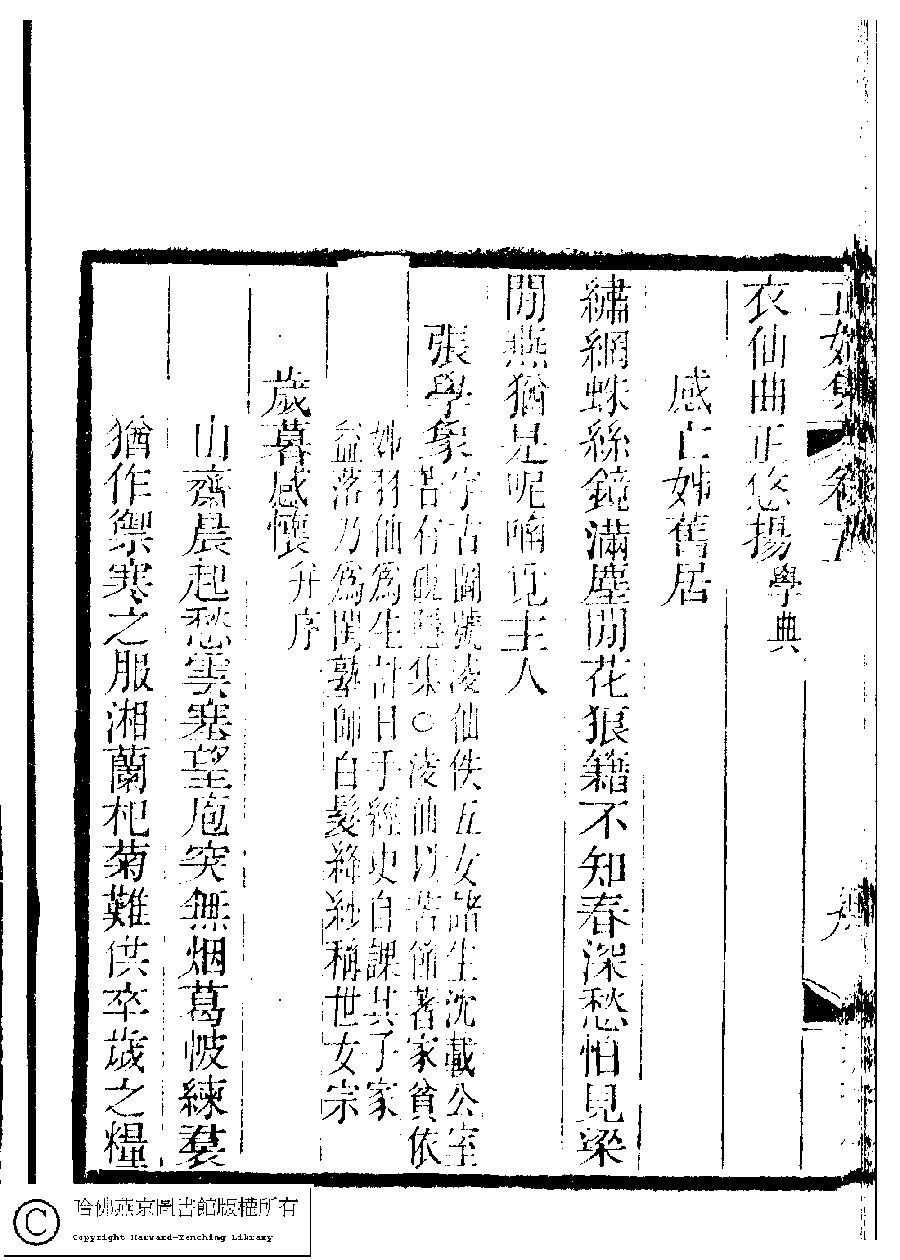 | 原書: 國朝閨秀正始集﹕二十卷﹐附錄﹕一卷﹐補遺﹕一卷﹐又附題詞﹕一卷(清惲珠輯) |