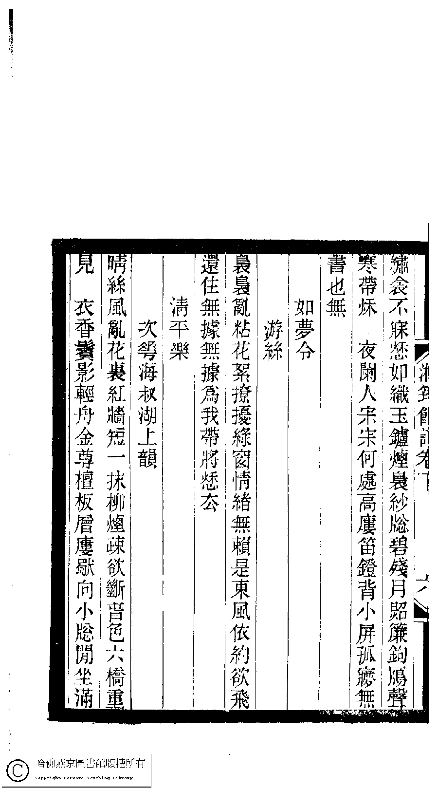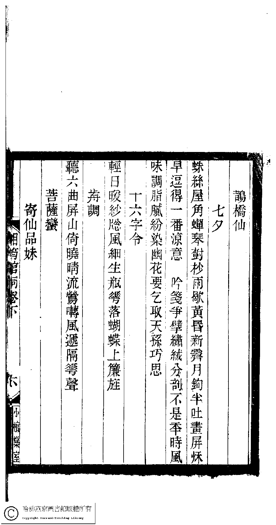 | 原書: 小檀欒室彙刻閨秀詞﹕十集一百種一百卷(清徐乃昌輯): 湘雲館詞﹕二卷 |