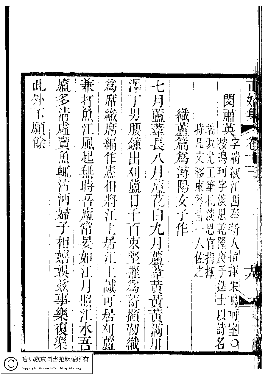 | 原書: 國朝閨秀正始集﹕二十卷﹐附錄﹕一卷﹐補遺﹕一卷﹐又附題詞﹕一卷(清惲珠輯) |