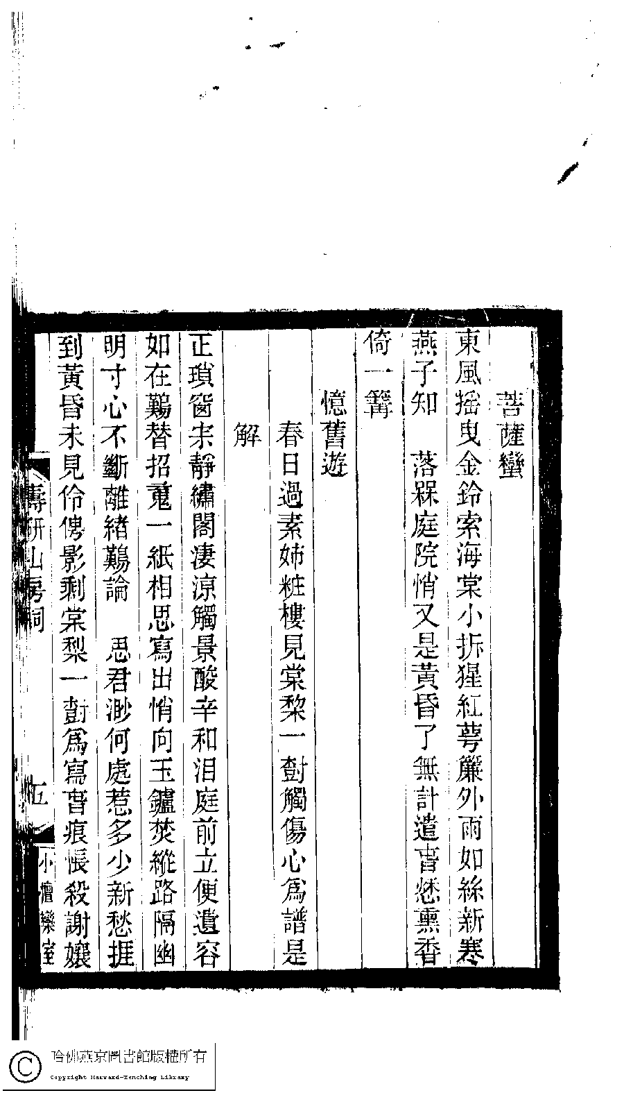 | 原書: 小檀欒室彙刻閨秀詞﹕十集一百種一百卷(清徐乃昌輯): 壽研山房詞﹕一卷 |