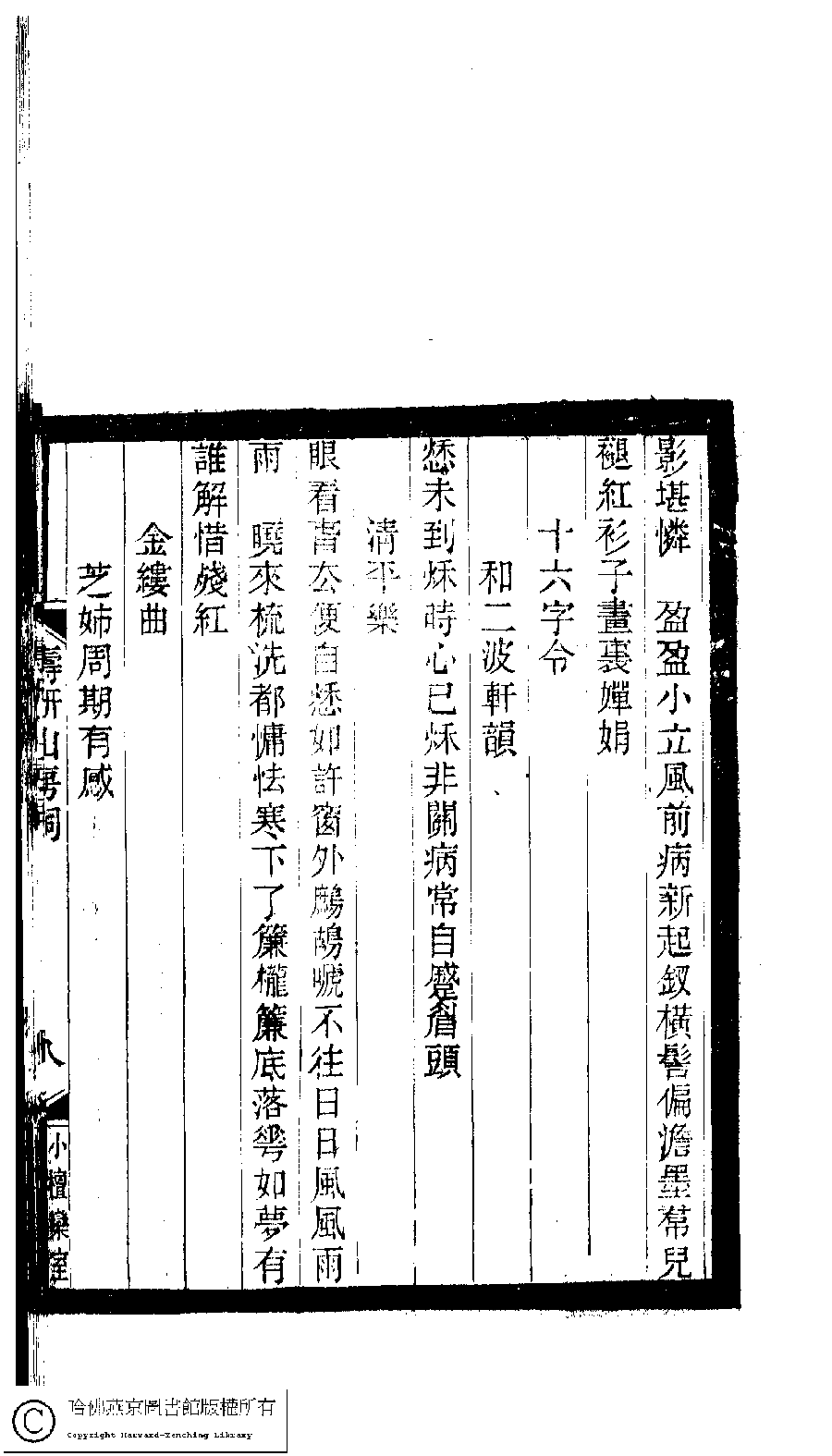 | 原書: 小檀欒室彙刻閨秀詞﹕十集一百種一百卷(清徐乃昌輯): 壽研山房詞﹕一卷 |