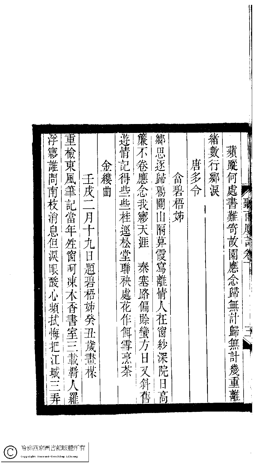 | 原書: 小檀欒室彙刻閨秀詞﹕十集一百種一百卷(清徐乃昌輯): 聽雨樓詞﹕二卷 |