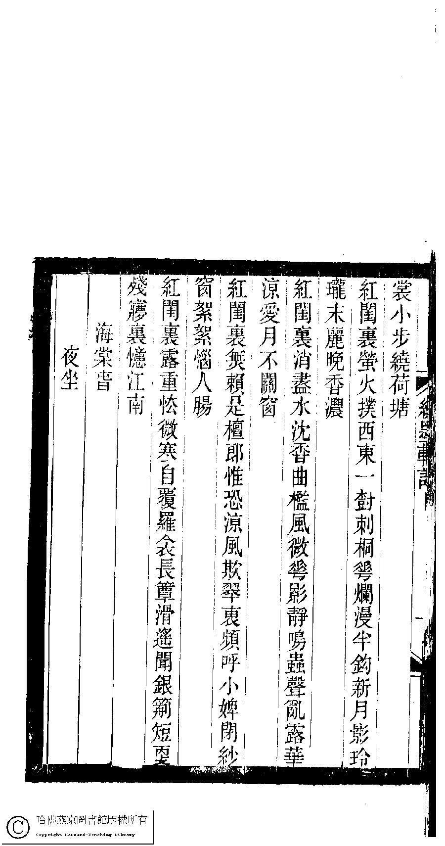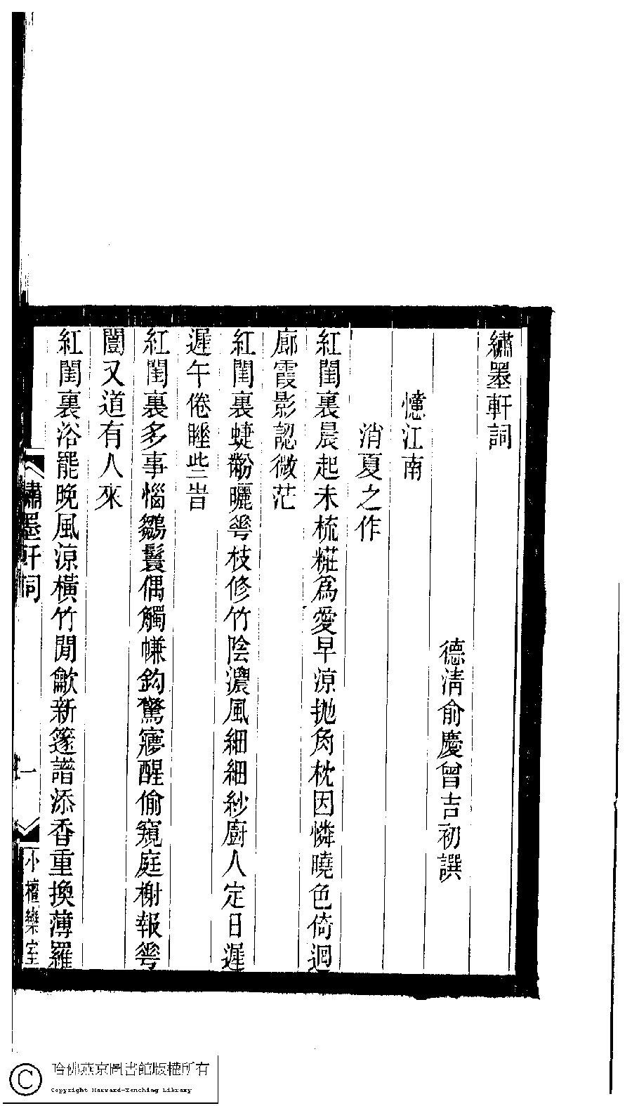 | 原書: 小檀欒室彙刻閨秀詞﹕十集一百種一百卷(清徐乃昌輯): 繡墨軒詞﹕一卷 |