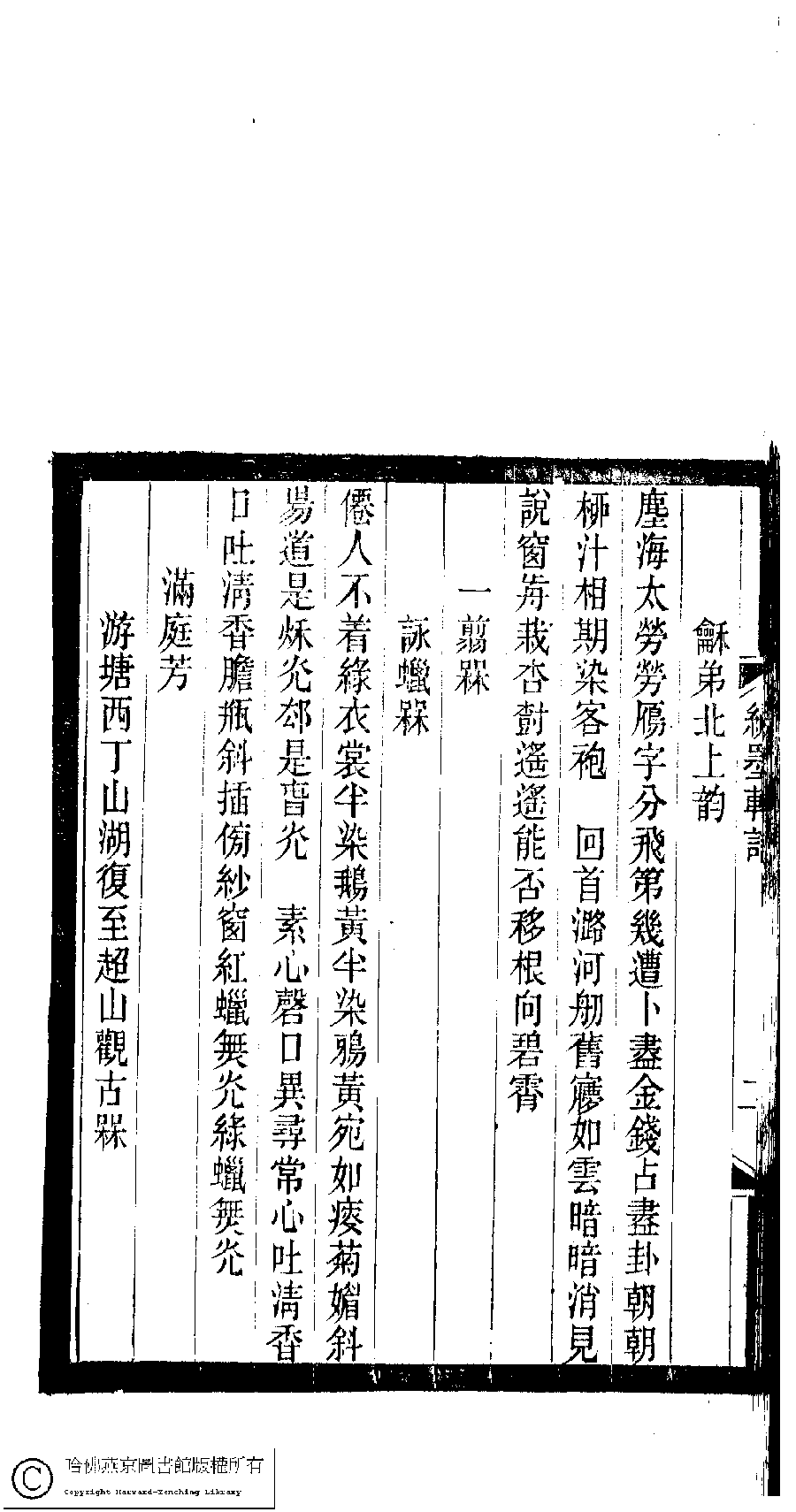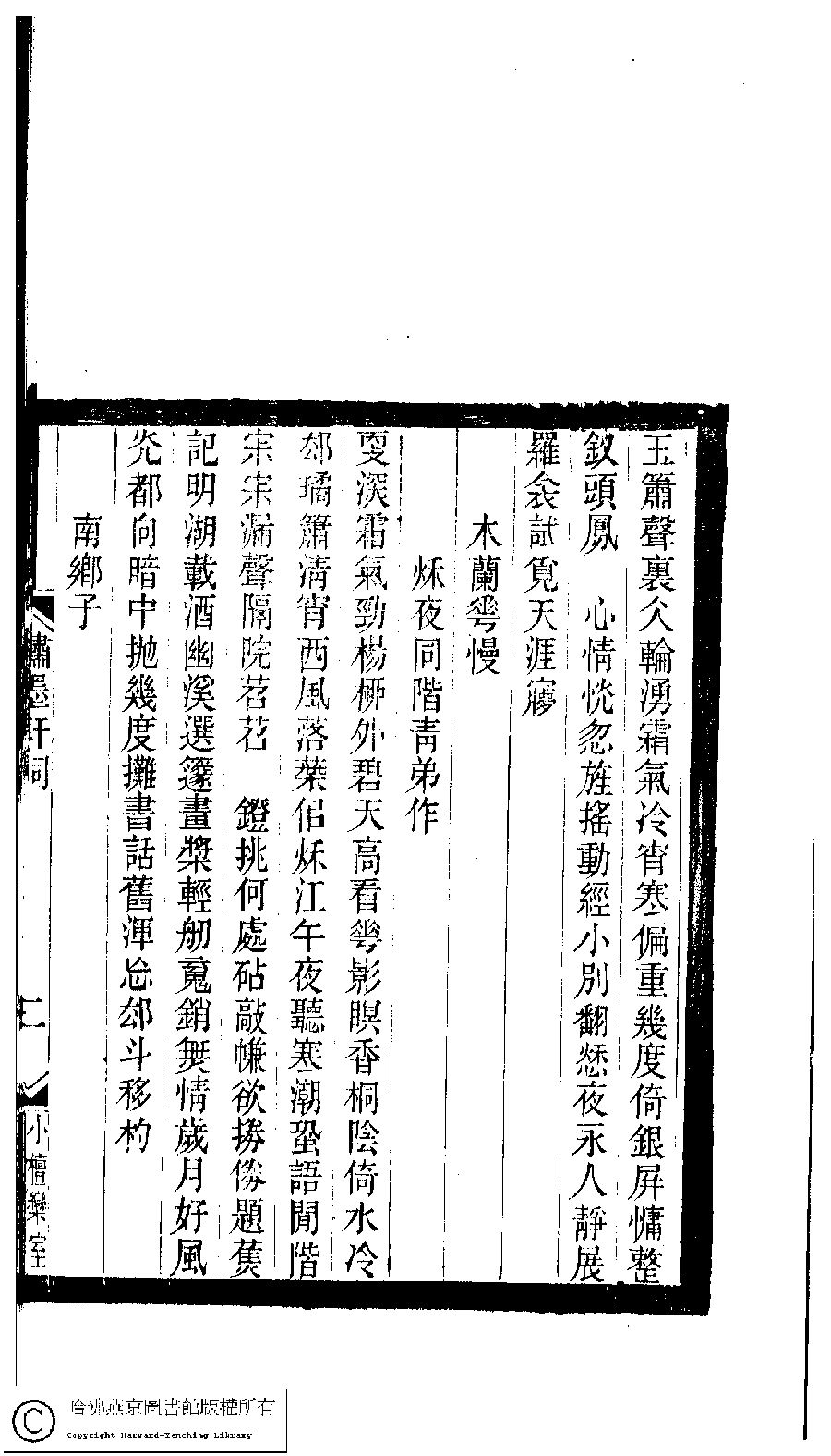 | 原書: 小檀欒室彙刻閨秀詞﹕十集一百種一百卷(清徐乃昌輯): 繡墨軒詞﹕一卷 |