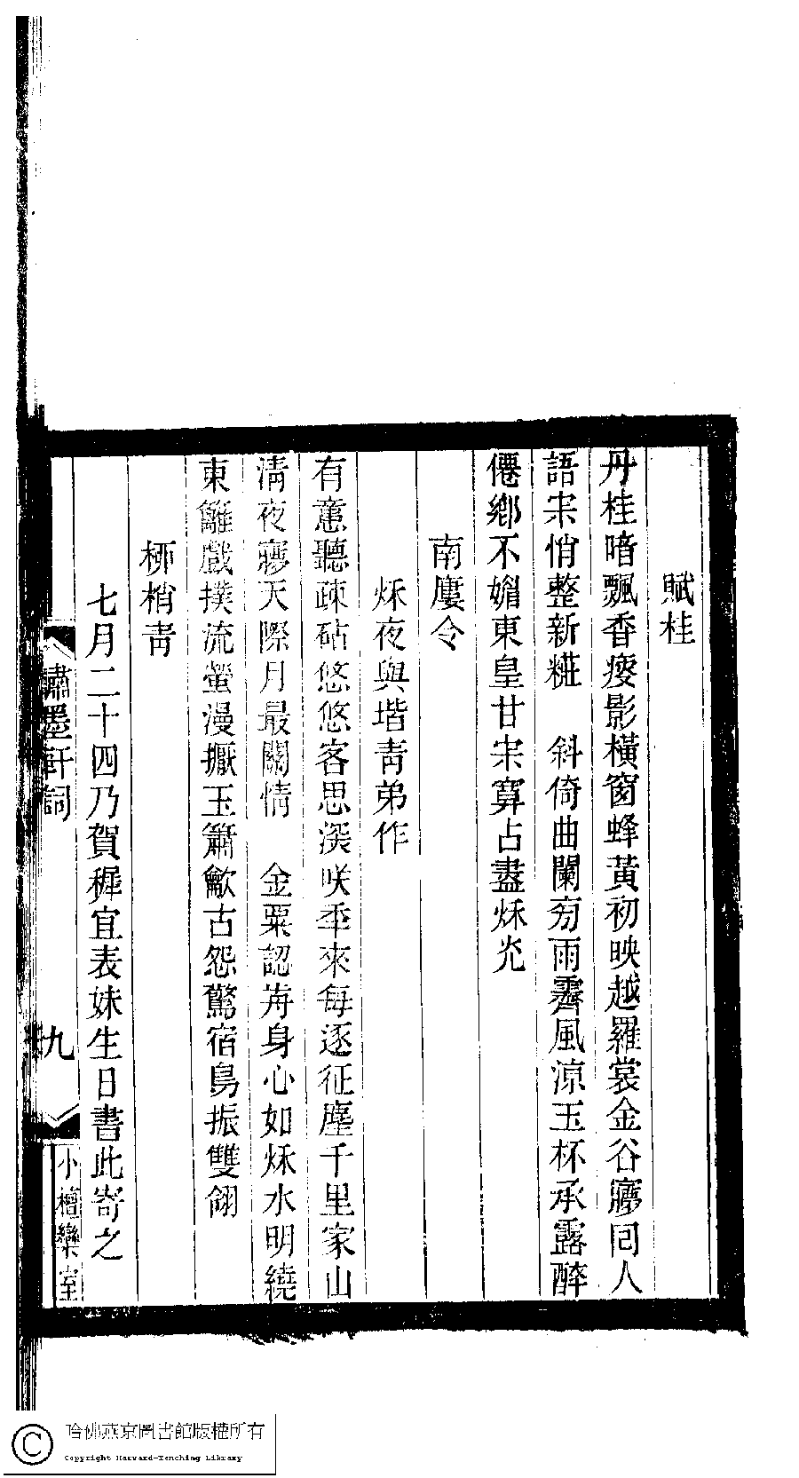 詩詞 [柳梢青 ﹕七月二十四乃賀稚宜表妹生日書此寄之]