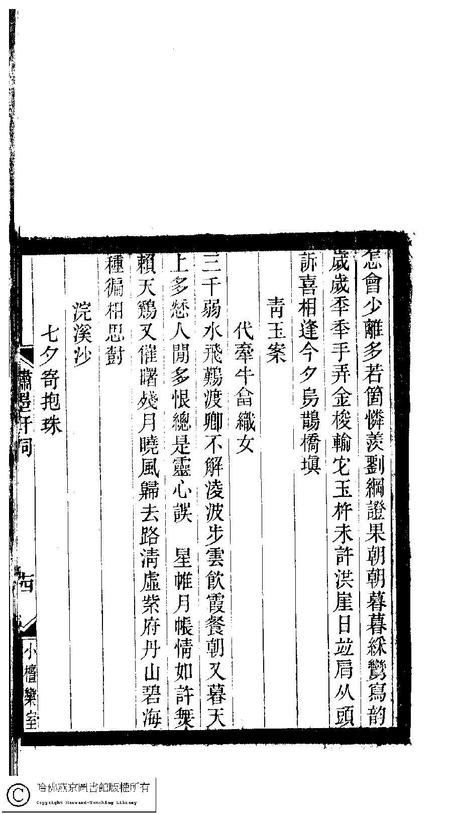 | 原書: 小檀欒室彙刻閨秀詞﹕十集一百種一百卷(清徐乃昌輯): 繡墨軒詞﹕一卷 |