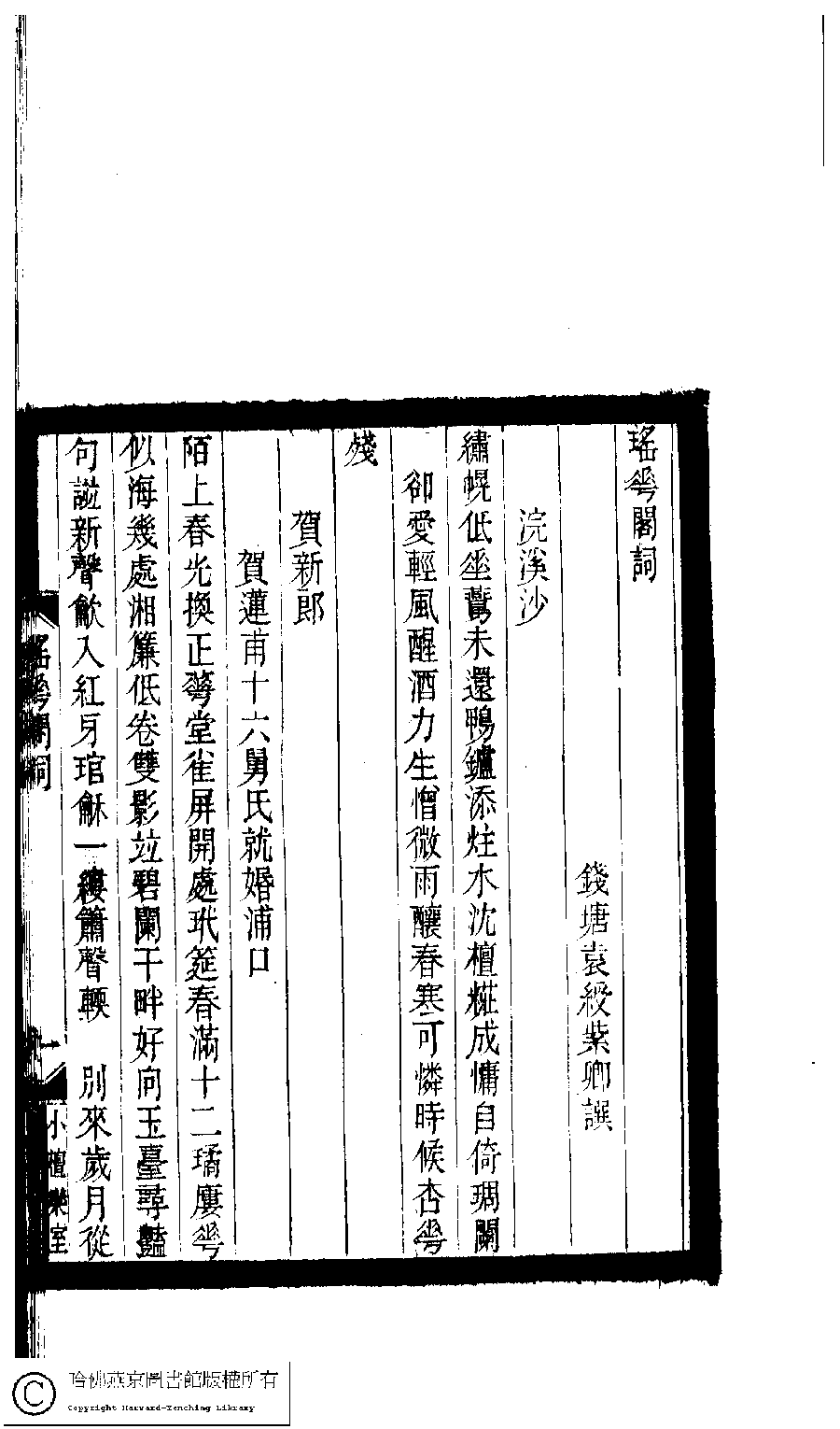| 原書: 小檀欒室彙刻閨秀詞﹕十集一百種一百卷(清徐乃昌輯): 瑤華閣詞﹕一卷補遺﹕一卷 |
