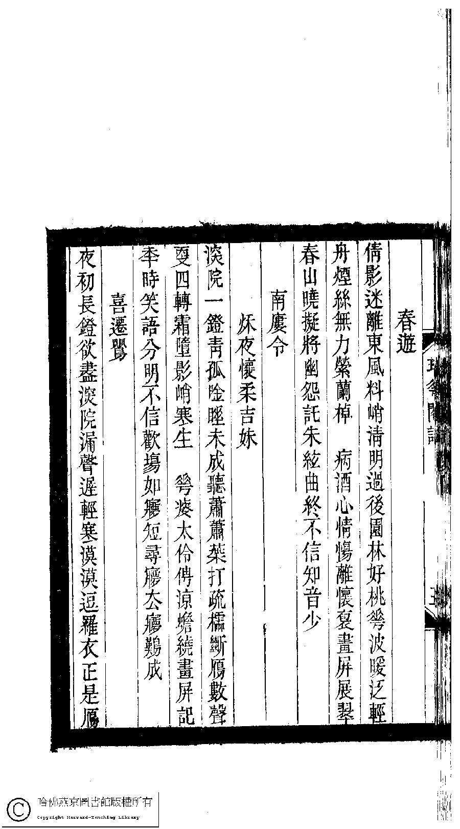 | 原書: 小檀欒室彙刻閨秀詞﹕十集一百種一百卷(清徐乃昌輯): 瑤華閣詞﹕一卷補遺﹕一卷 |