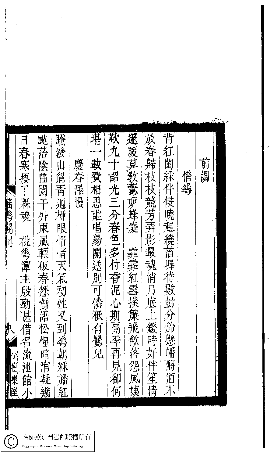 | 原書: 小檀欒室彙刻閨秀詞﹕十集一百種一百卷(清徐乃昌輯): 瑤華閣詞﹕一卷補遺﹕一卷 |