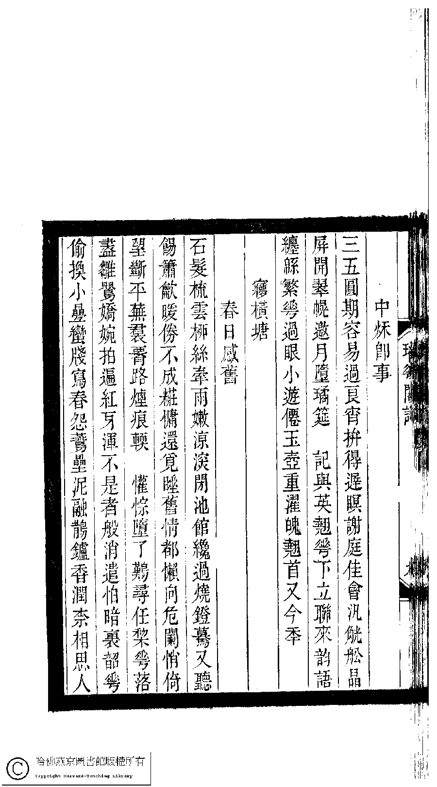 | 原書: 小檀欒室彙刻閨秀詞﹕十集一百種一百卷(清徐乃昌輯): 瑤華閣詞﹕一卷補遺﹕一卷 |
