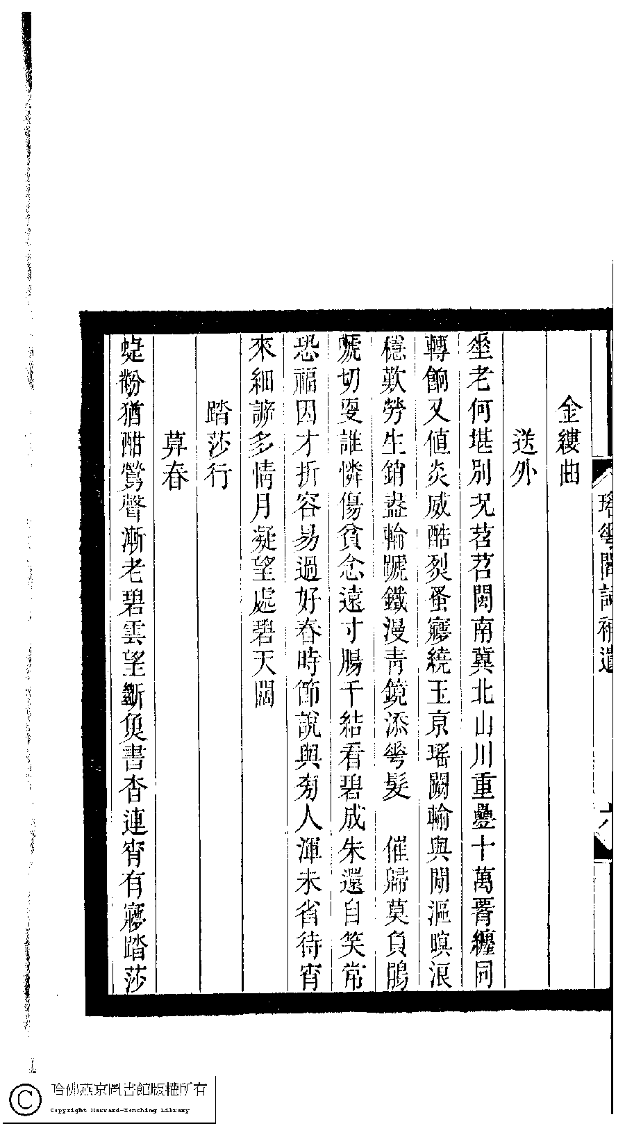 | 原書: 小檀欒室彙刻閨秀詞﹕十集一百種一百卷(清徐乃昌輯): 瑤華閣詞﹕一卷補遺﹕一卷 |
