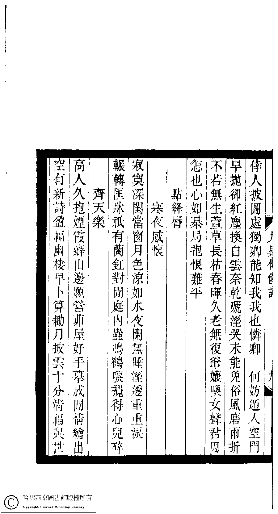| 原書: 小檀欒室彙刻閨秀詞﹕十集一百種一百卷(清徐乃昌輯): 九疑仙館詞﹕一卷 |