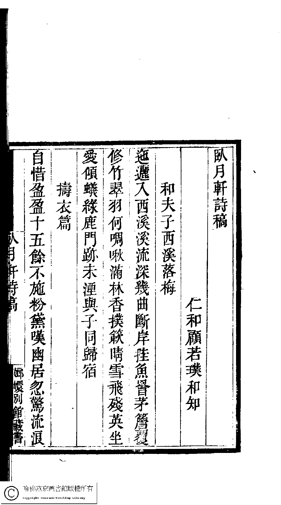 | 原書: 國朝閨閣詩鈔﹕一百種一百卷(清蔡殿齊輯): 臥月軒詩稿﹕一卷 |