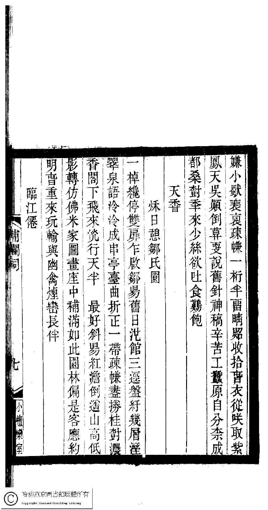 | 原書: 小檀欒室彙刻閨秀詞﹕十集一百種一百卷(清徐乃昌輯): 補欄詞﹕一卷 |