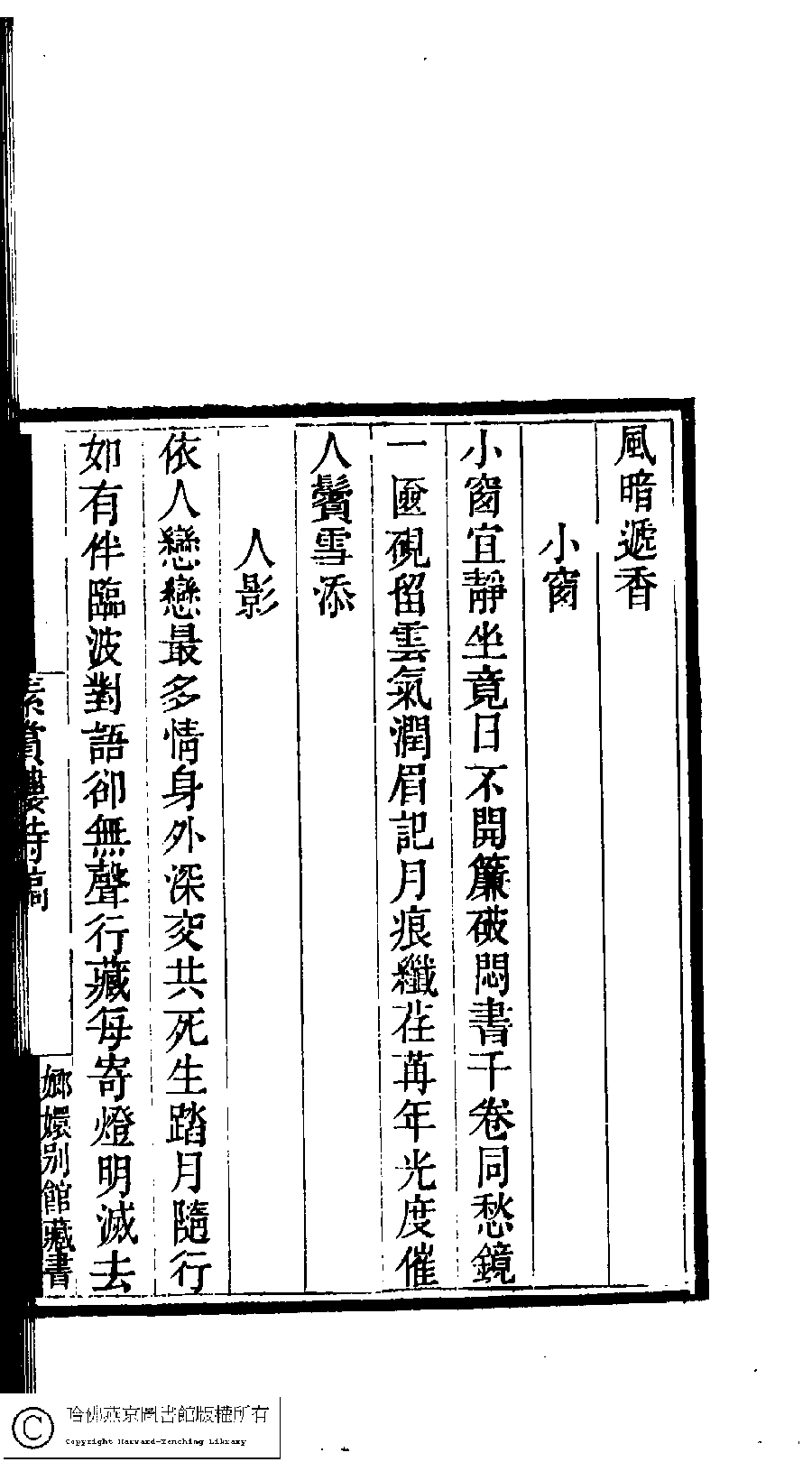 | 原書: 國朝閨閣詩鈔﹕一百種一百卷(清蔡殿齊輯): 素賞樓詩稿﹕一卷 |