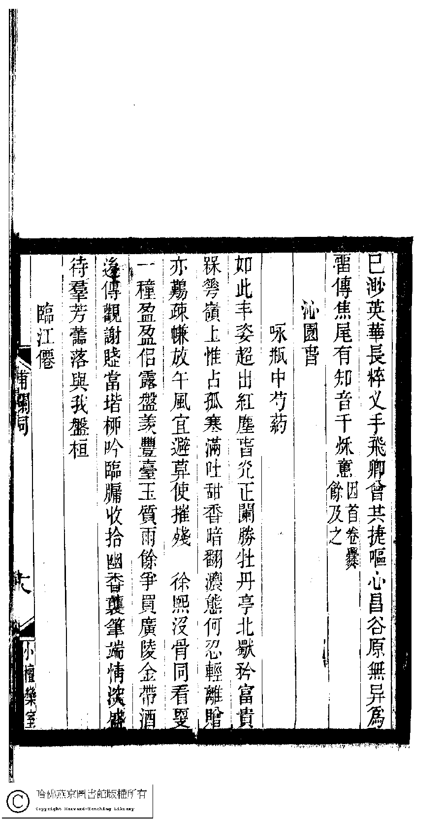 | 原書: 小檀欒室彙刻閨秀詞﹕十集一百種一百卷(清徐乃昌輯): 補欄詞﹕一卷 |