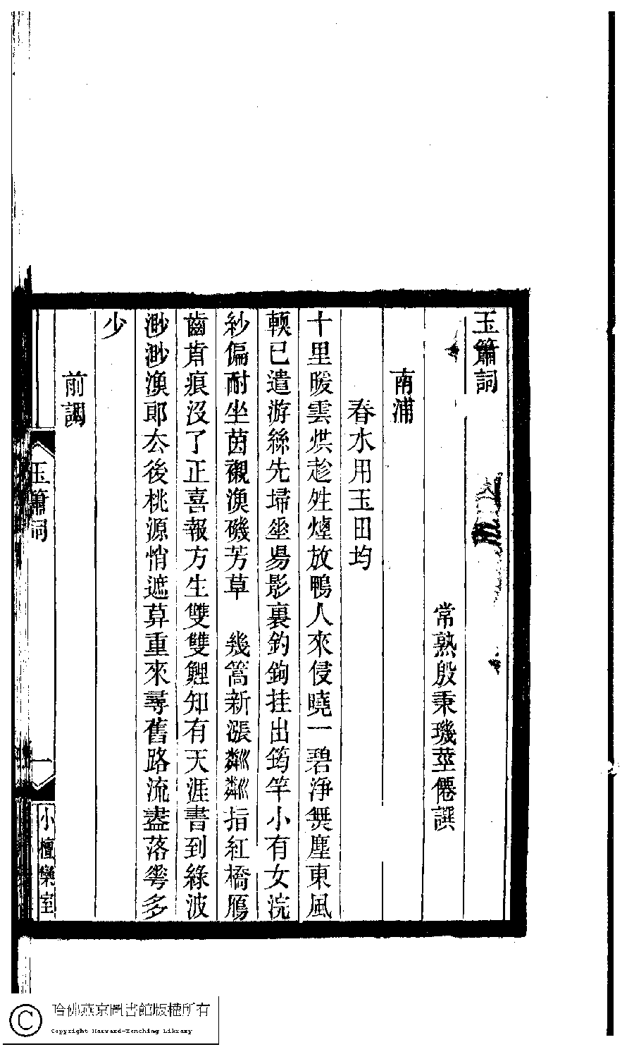 | 原書: 小檀欒室彙刻閨秀詞﹕十集一百種一百卷(清徐乃昌輯): 玉簫詞﹕一卷 |