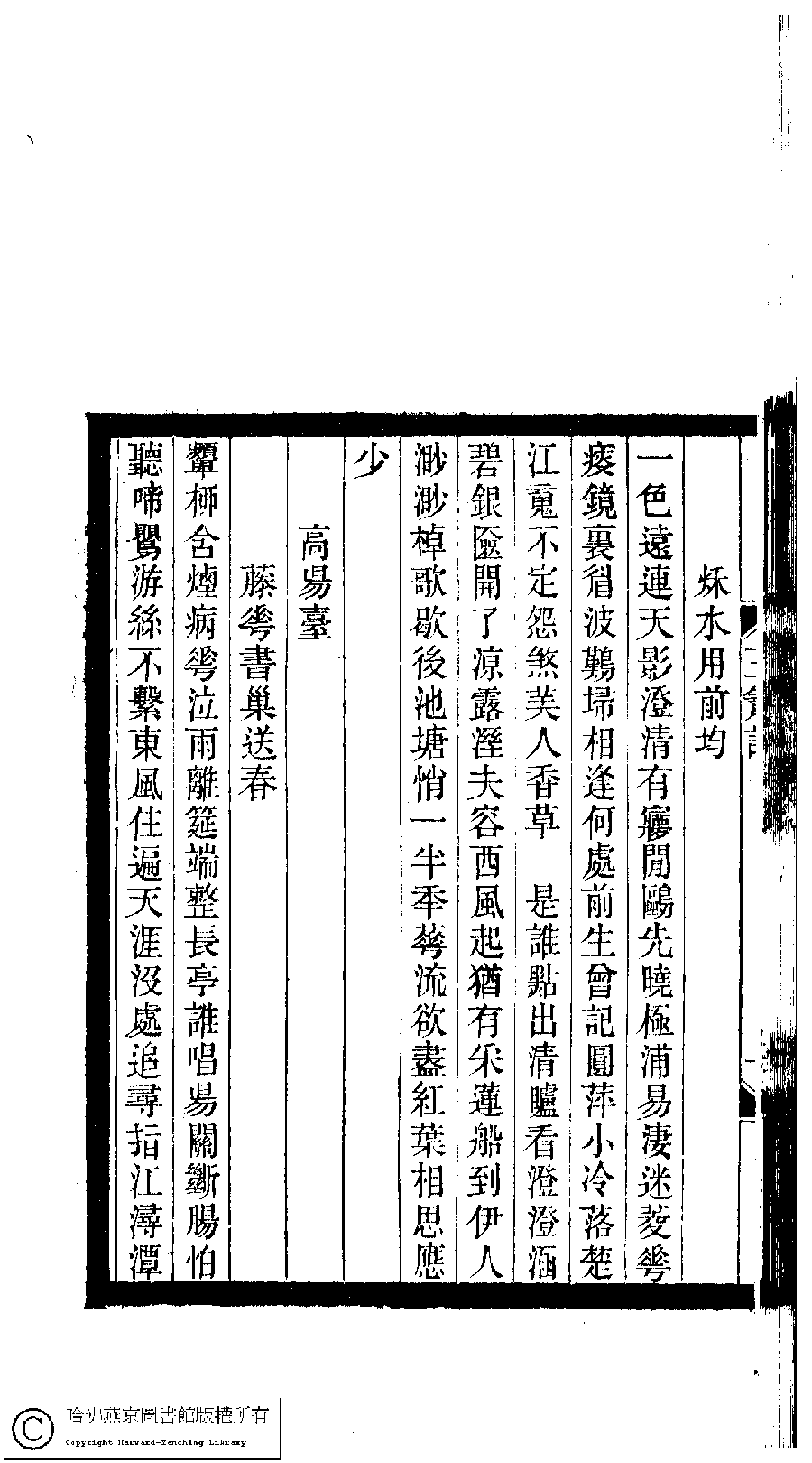 | (PRINT FRIENDLY VERSION) 小檀欒室彙刻閨秀詞﹕十集一百種一百卷(清徐乃昌輯) : 玉簫詞﹕一卷。清光緒二十二年(1896)南陵徐氏刻本。 ![]() 頁碼 : 玉簫詞.2a | 点 击 放 大 | 小檀欒室彙刻閨秀詞﹕十集一百種一百卷(清徐乃昌輯) : 玉簫詞﹕一卷。清光緒二十二年(1896)南陵徐氏刻本。![]() 頁碼 : 玉簫詞.1b | 点 击 放 大 | 返回 |