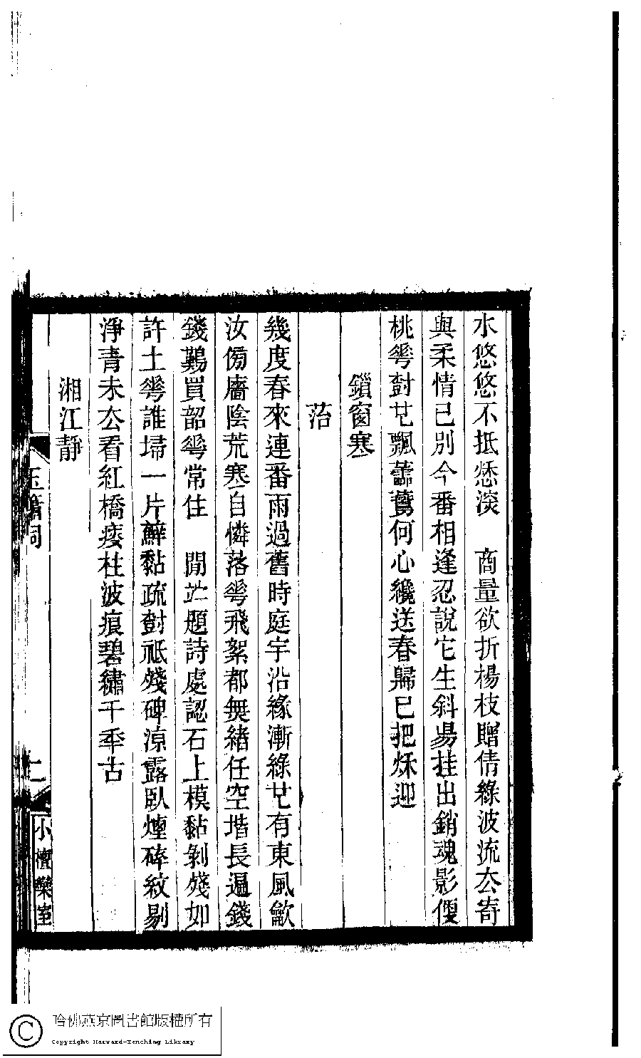 | 原書: 小檀欒室彙刻閨秀詞﹕十集一百種一百卷(清徐乃昌輯): 玉簫詞﹕一卷 |
