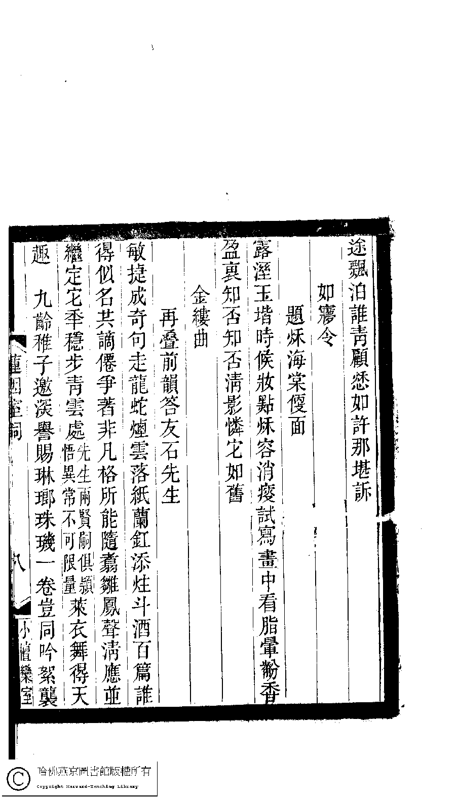 | 原書: 小檀欒室彙刻閨秀詞﹕十集一百種一百卷(清徐乃昌輯): 蓮因室詞﹕一卷 |
