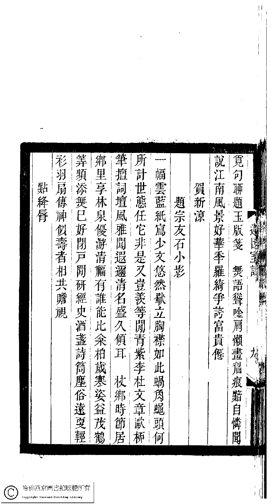 | (PRINT FRIENDLY VERSION) 小檀欒室彙刻閨秀詞﹕十集一百種一百卷(清徐乃昌輯) : 蓮因室詞﹕一卷。清光緒二十二年(1896)南陵徐氏刻本。 ![]() 頁碼 : 蓮因室詞.10a | 点 击 放 大 | 小檀欒室彙刻閨秀詞﹕十集一百種一百卷(清徐乃昌輯) : 蓮因室詞﹕一卷。清光緒二十二年(1896)南陵徐氏刻本。![]() 頁碼 : 蓮因室詞.9b | 点 击 放 大 | 返回 |