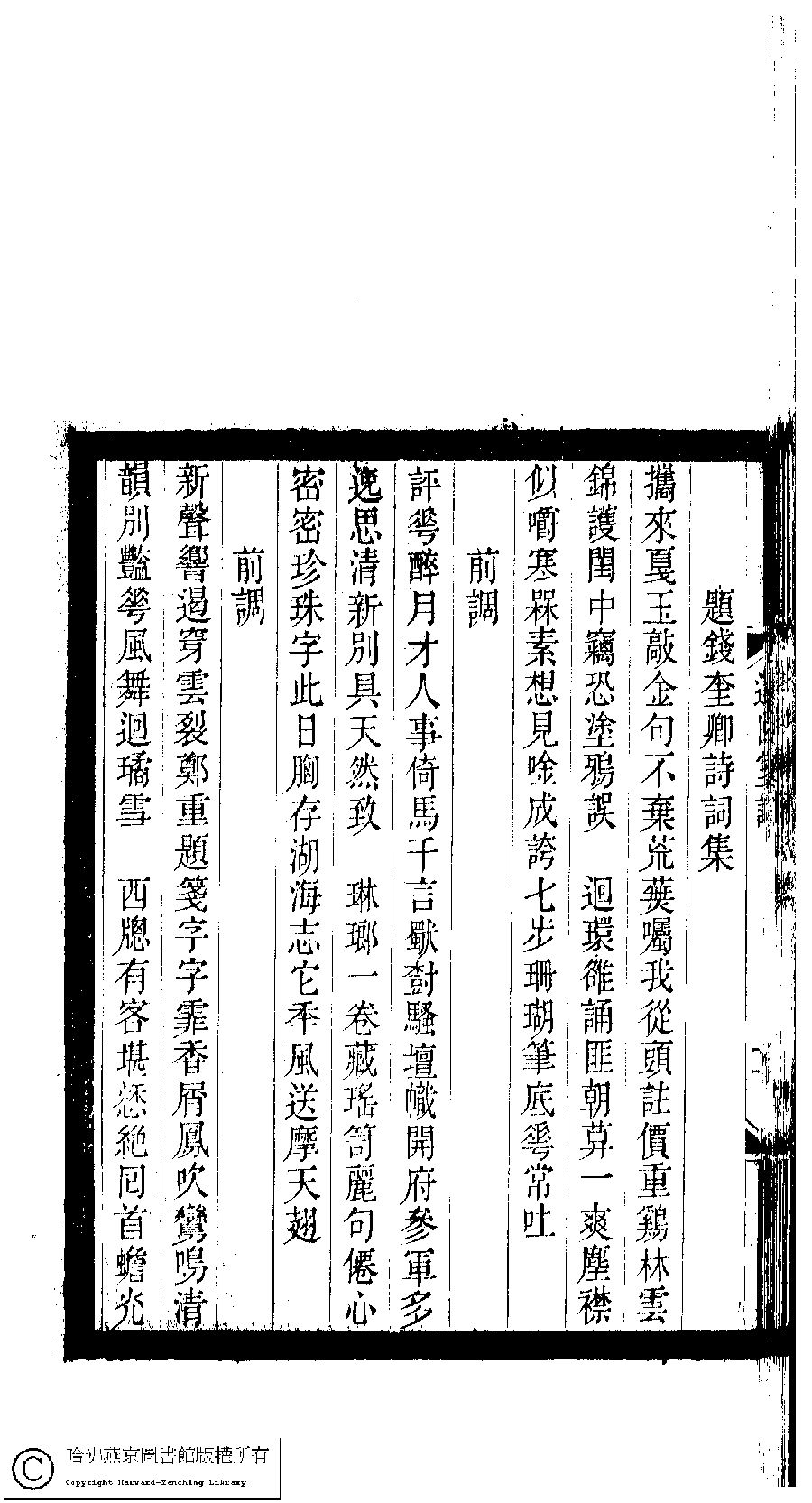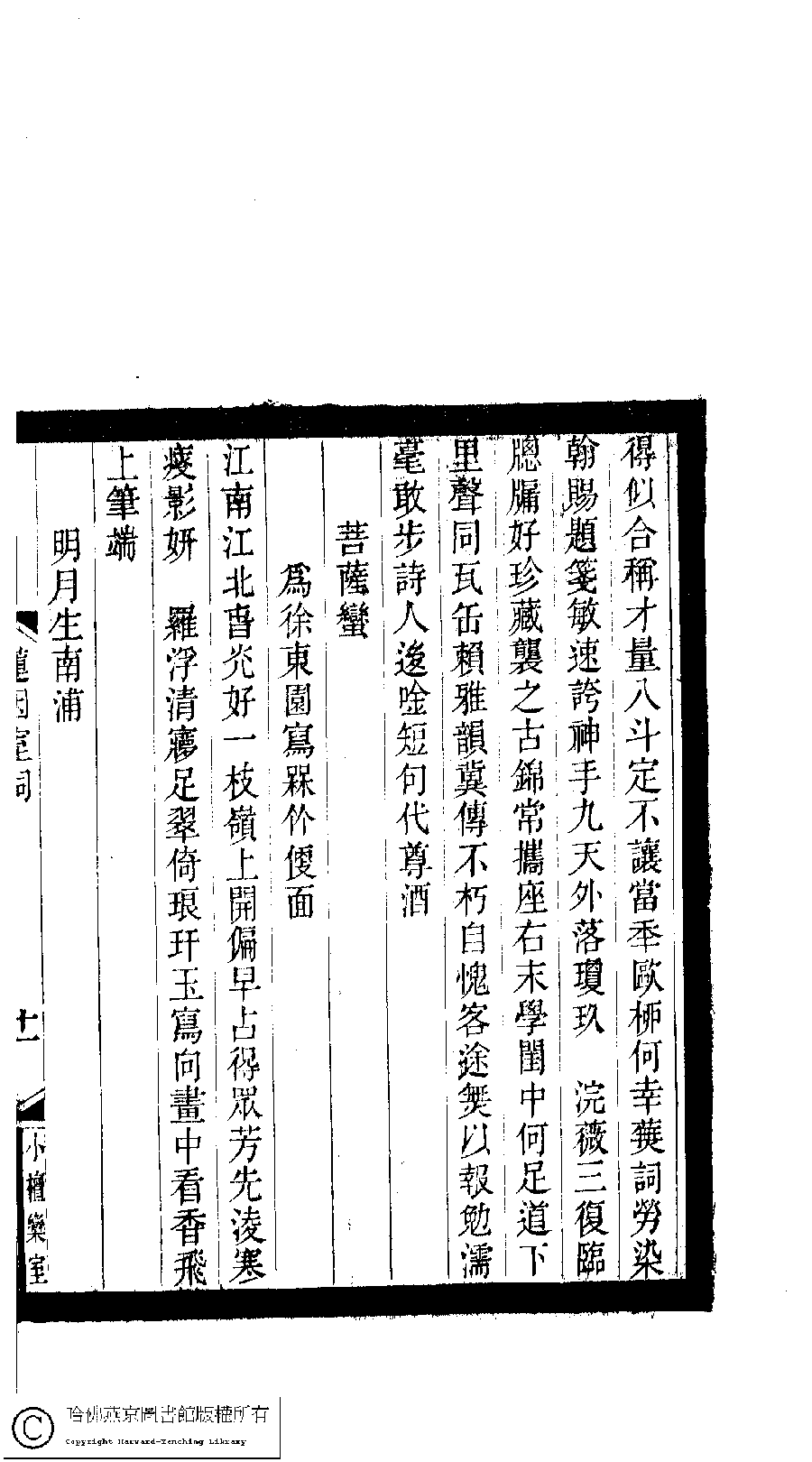 | (PRINT FRIENDLY VERSION) 小檀欒室彙刻閨秀詞﹕十集一百種一百卷(清徐乃昌輯) : 蓮因室詞﹕一卷。清光緒二十二年(1896)南陵徐氏刻本。 ![]() 頁碼 : 蓮因室詞.11b | 点 击 放 大 | 小檀欒室彙刻閨秀詞﹕十集一百種一百卷(清徐乃昌輯) : 蓮因室詞﹕一卷。清光緒二十二年(1896)南陵徐氏刻本。![]() 頁碼 : 蓮因室詞.11a | 点 击 放 大 | 返回 |
