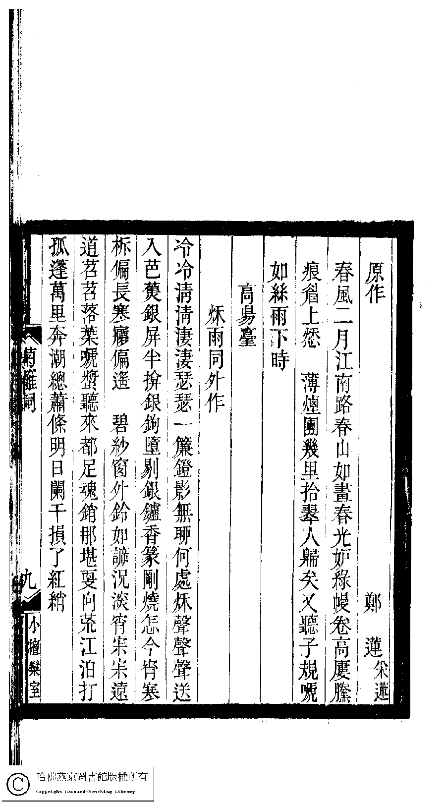 | 原書: 小檀欒室彙刻閨秀詞﹕十集一百種一百卷(清徐乃昌輯): 鞠篱詞﹕一卷 |