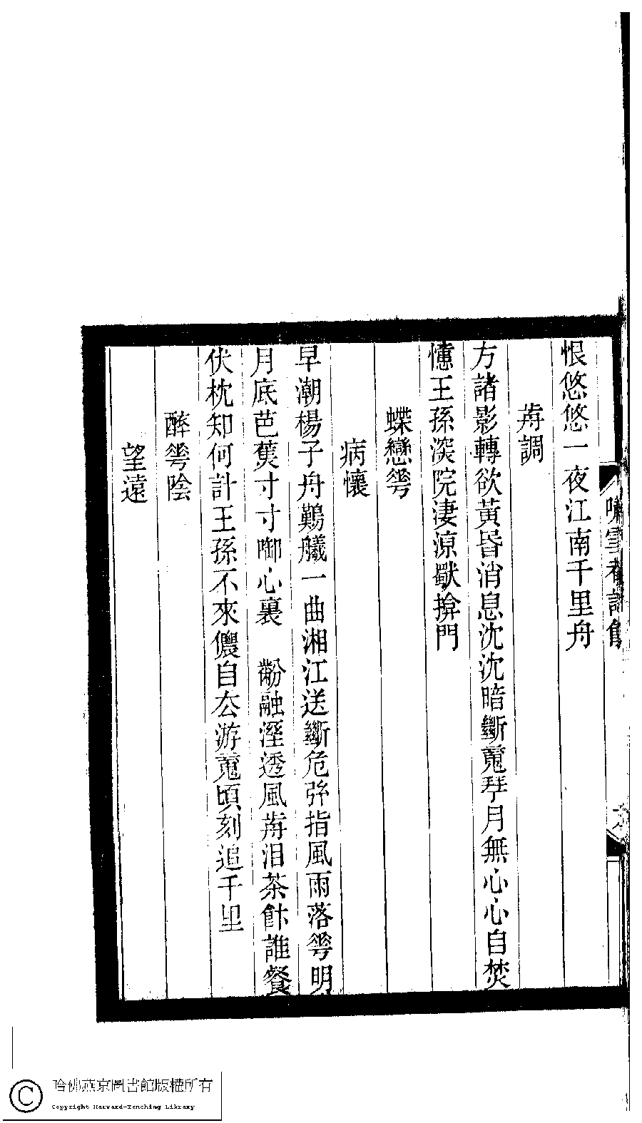| 原書: 小檀欒室彙刻閨秀詞﹕十集一百種一百卷(清徐乃昌輯): 嘯雪庵詩餘﹕一卷 |