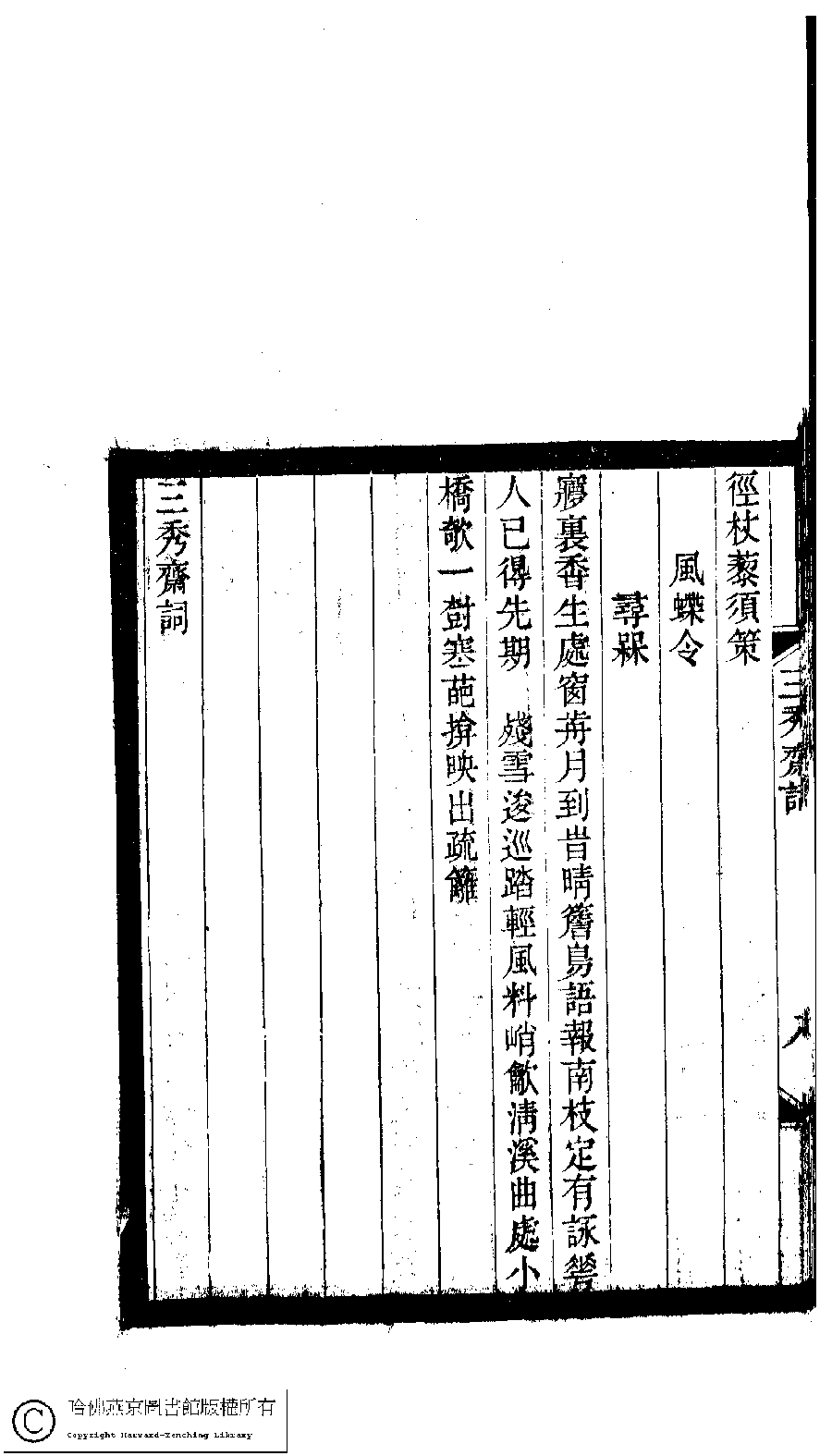 | 原書: 小檀欒室彙刻閨秀詞﹕十集一百種一百卷(清徐乃昌輯): 三秀齋詞﹕一卷 |