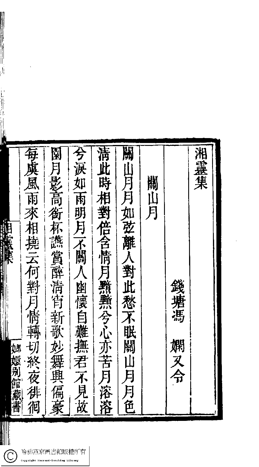 | 原書: 國朝閨閣詩鈔﹕一百種一百卷(清蔡殿齊輯): 湘靈集﹕一卷 |