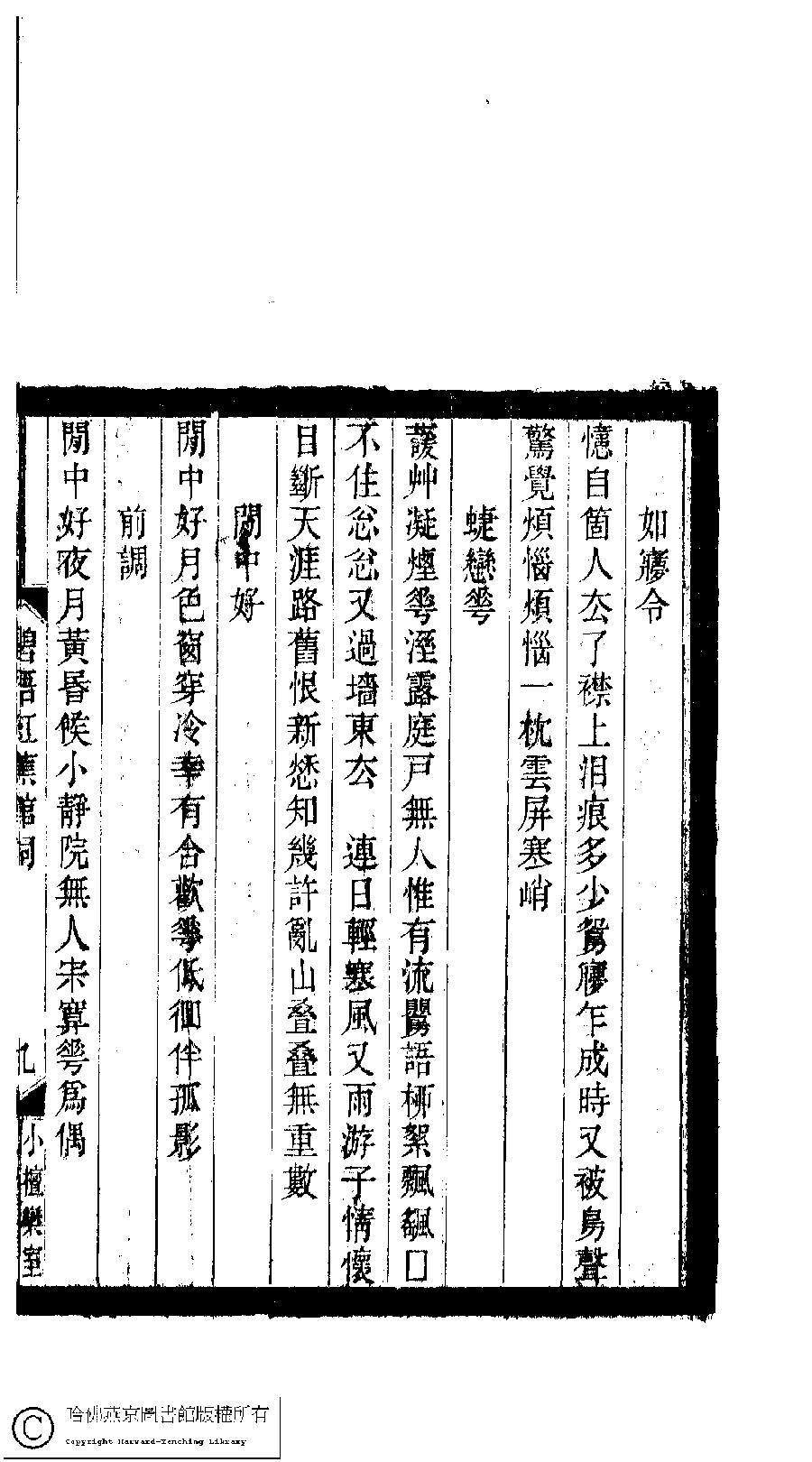 | 原書: 小檀欒室彙刻閨秀詞﹕十集一百種一百卷(清徐乃昌輯): 碧梧紅蕉館詞﹕一卷 |