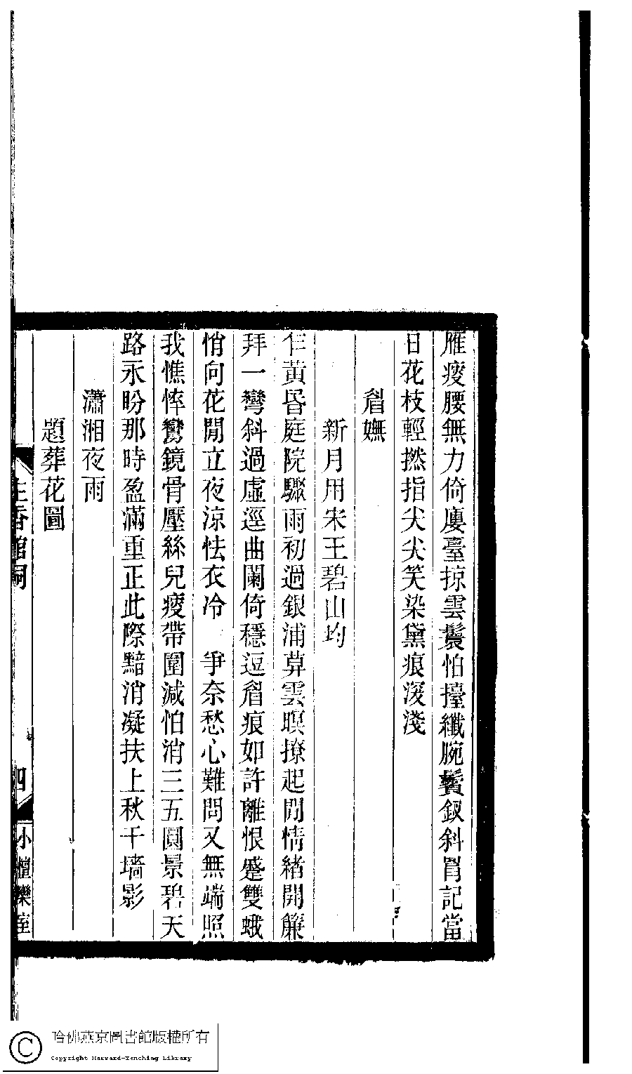 | 原書: 小檀欒室彙刻閨秀詞﹕十集一百種一百卷(清徐乃昌輯): 生香館詞﹕一卷 |