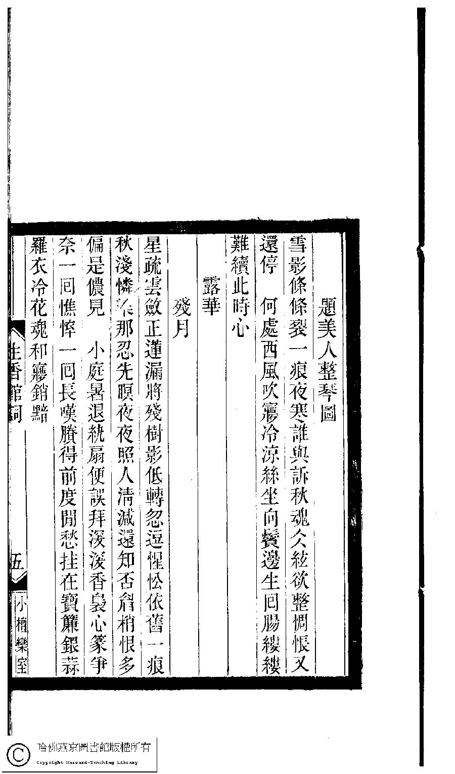 | 原書: 小檀欒室彙刻閨秀詞﹕十集一百種一百卷(清徐乃昌輯): 生香館詞﹕一卷 |