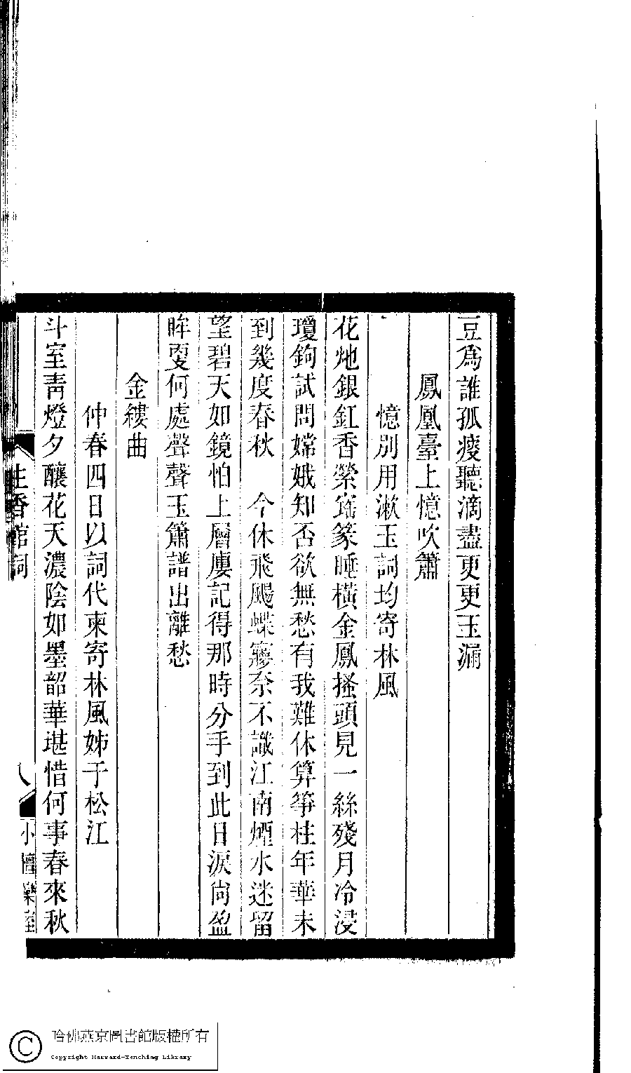 | 原書: 小檀欒室彙刻閨秀詞﹕十集一百種一百卷(清徐乃昌輯): 生香館詞﹕一卷 |