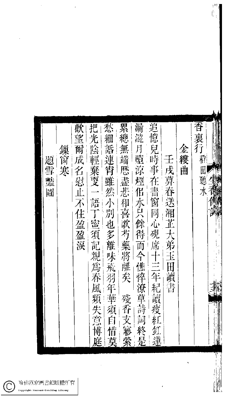 | 原書: 小檀欒室彙刻閨秀詞﹕十集一百種一百卷(清徐乃昌輯): 生香館詞﹕一卷 |