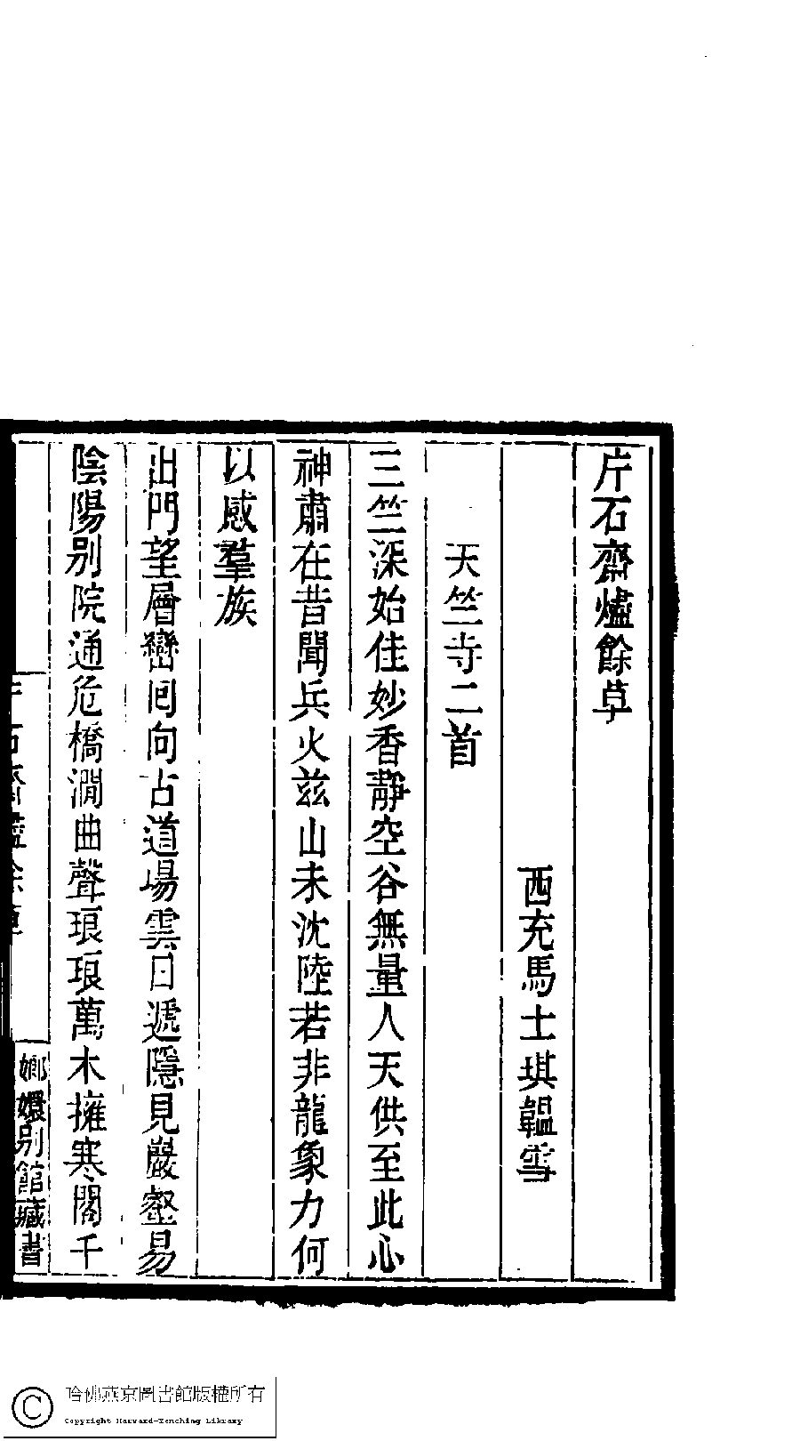 | (PRINT FRIENDLY VERSION) 國朝閨閣詩鈔﹕一百種一百卷(清蔡殿齊輯) : 片石齋燼餘草﹕一卷。清道光二十四年(1844)刻本。 ![]() 頁碼 : 2.48b | 点 击 放 大 | 國朝閨閣詩鈔﹕一百種一百卷(清蔡殿齊輯) : 片石齋燼餘草﹕一卷。清道光二十四年(1844)刻本。![]() 頁碼 : 2.48a | 点 击 放 大 | 返回 |
