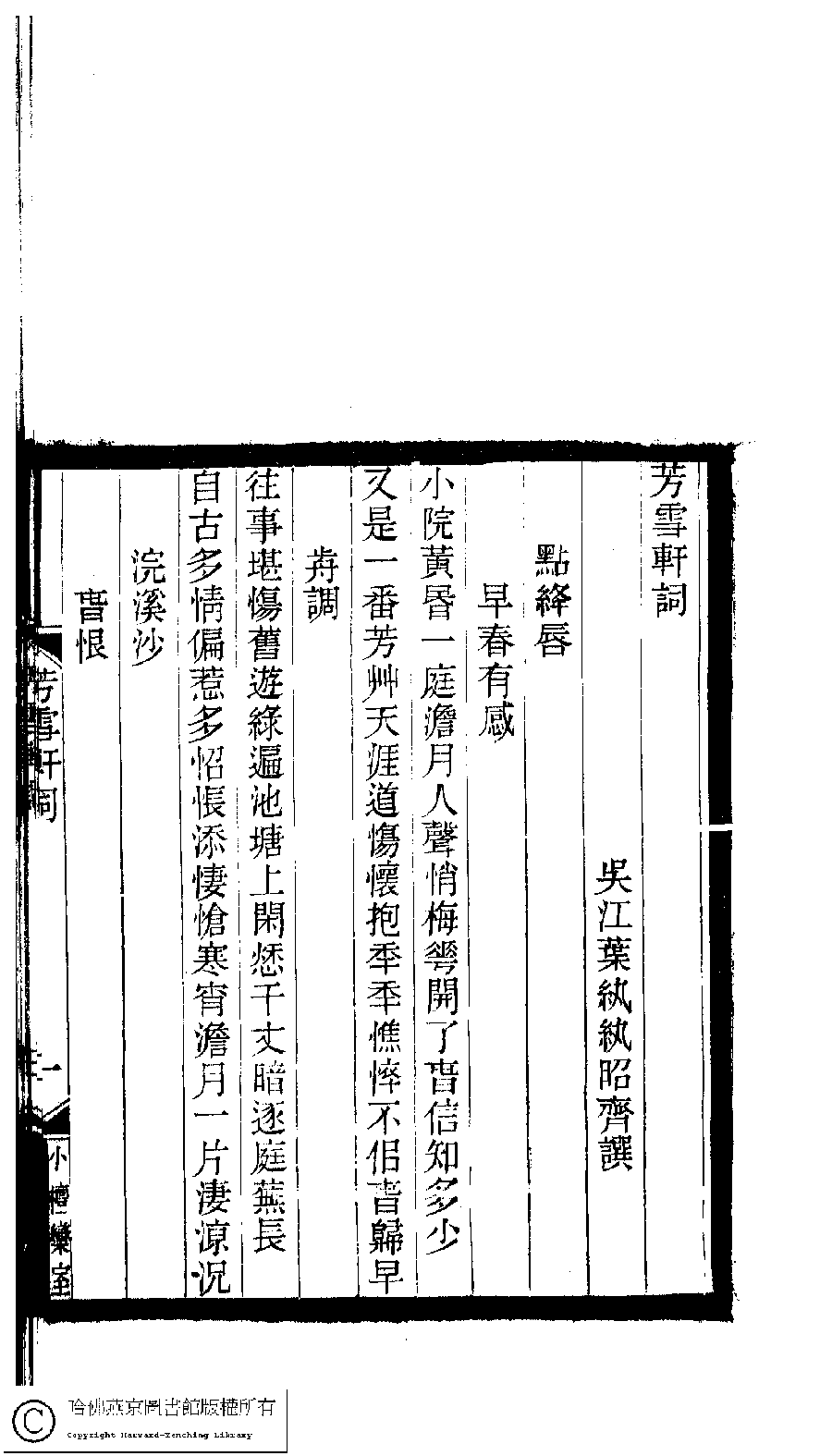 | 原書: 小檀欒室彙刻閨秀詞﹕十集一百種一百卷(清徐乃昌輯): 芳雪軒詞﹕一卷 |