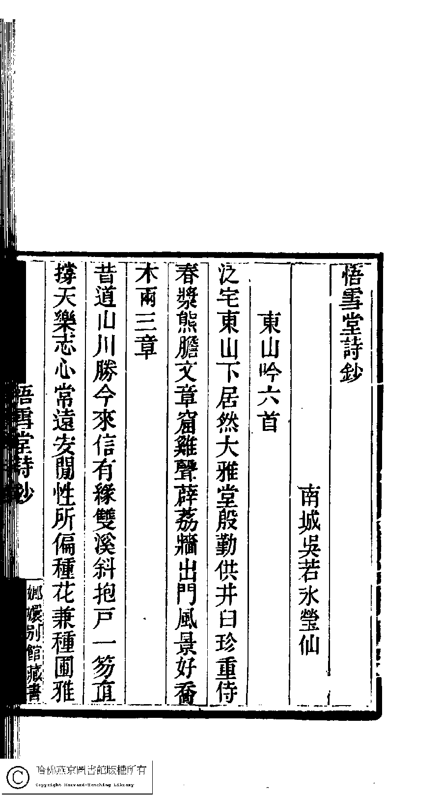 | 原書: 國朝閨閣詩鈔﹕一百種一百卷(清蔡殿齊輯): 悟雪堂詩鈔﹕一卷 |