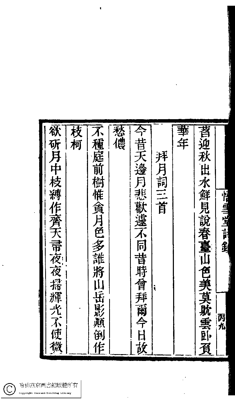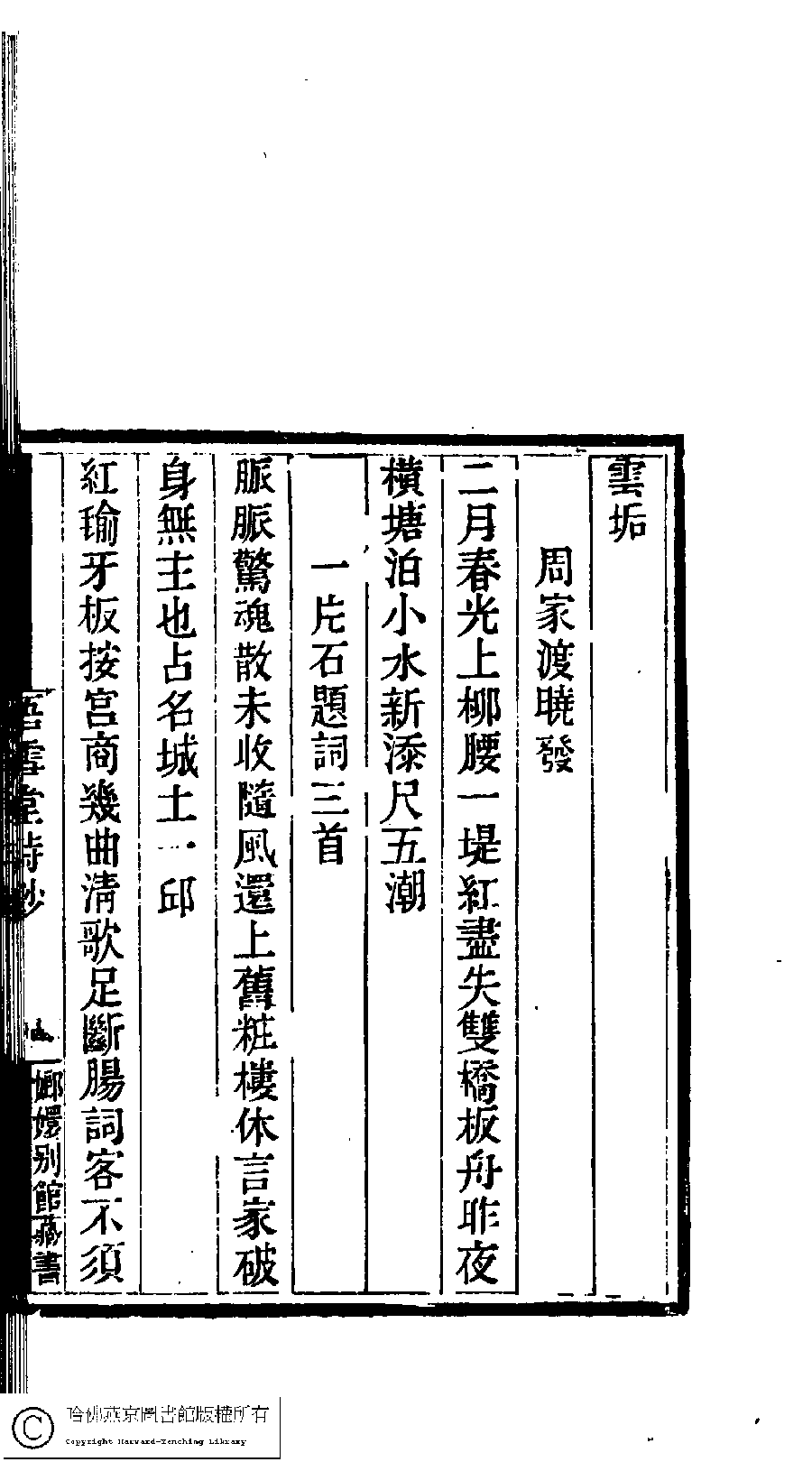 | (PRINT FRIENDLY VERSION) 國朝閨閣詩鈔﹕一百種一百卷(清蔡殿齊輯) : 悟雪堂詩鈔﹕一卷。清道光二十四年(1844)刻本。 ![]() 頁碼 : 3.10a | 点 击 放 大 | 國朝閨閣詩鈔﹕一百種一百卷(清蔡殿齊輯) : 悟雪堂詩鈔﹕一卷。清道光二十四年(1844)刻本。![]() 頁碼 : 3.9b | 点 击 放 大 | 返回 |