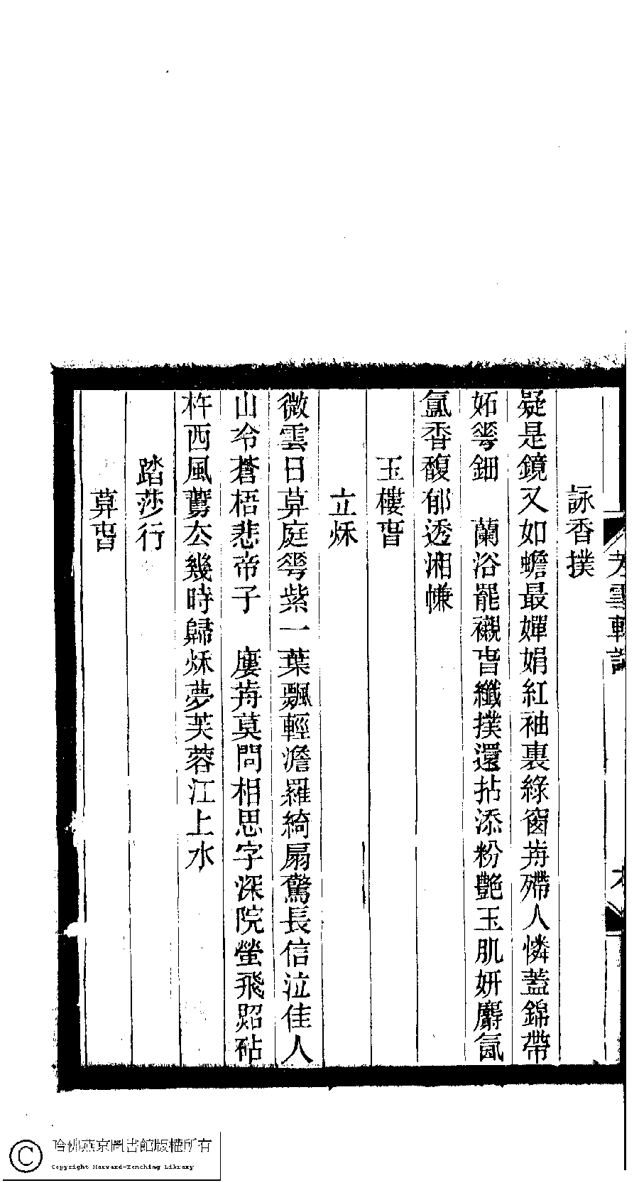 | 原書: 小檀欒室彙刻閨秀詞﹕十集一百種一百卷(清徐乃昌輯): 芳雪軒詞﹕一卷 |