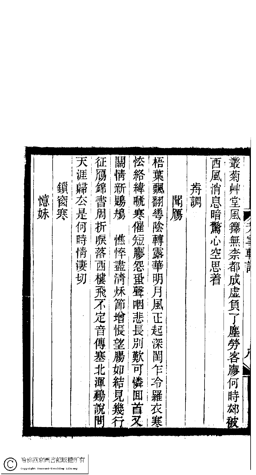 | 原書: 小檀欒室彙刻閨秀詞﹕十集一百種一百卷(清徐乃昌輯): 芳雪軒詞﹕一卷 |
