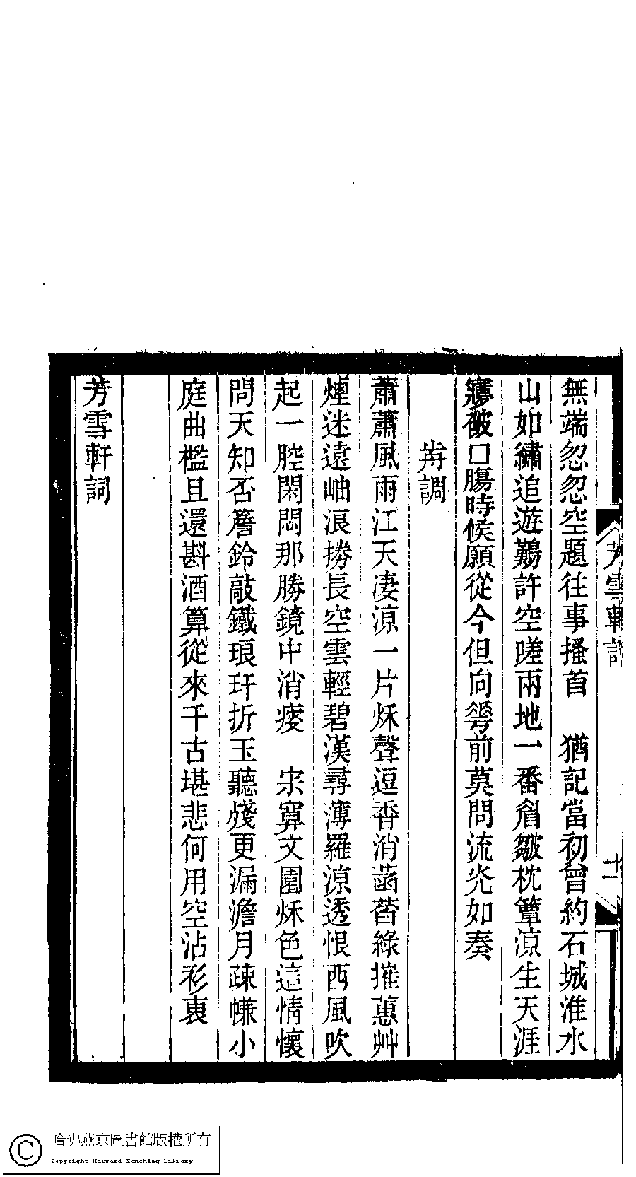 | 原書: 小檀欒室彙刻閨秀詞﹕十集一百種一百卷(清徐乃昌輯): 芳雪軒詞﹕一卷 |
