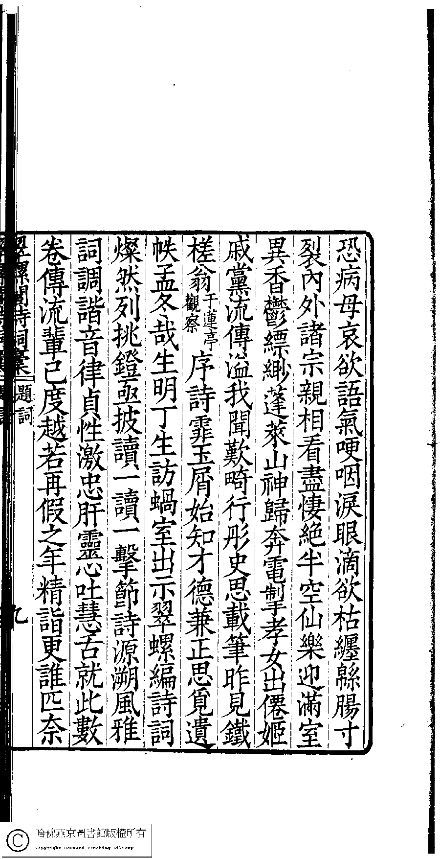 | (PRINT FRIENDLY VERSION) 翠螺閣詩詞稾﹕五卷﹐附舞鏡集﹕一卷(清凌祉媛撰) ![]() 頁碼 : 題辭.8b | 点 击 放 大 | 翠螺閣詩詞稾﹕五卷﹐附舞鏡集﹕一卷(清凌祉媛撰)![]() 頁碼 : 題辭.8a | 点 击 放 大 | 翠螺閣詩詞稾﹕五卷﹐附舞鏡集﹕一卷(清凌祉媛撰)![]() 頁碼 : 題辭.7b | 点 击 放 大 | 翠螺閣詩詞稾﹕五卷﹐附舞鏡集﹕一卷(清凌祉媛撰)![]() 頁碼 : 題辭.7a | 点 击 放 大 |