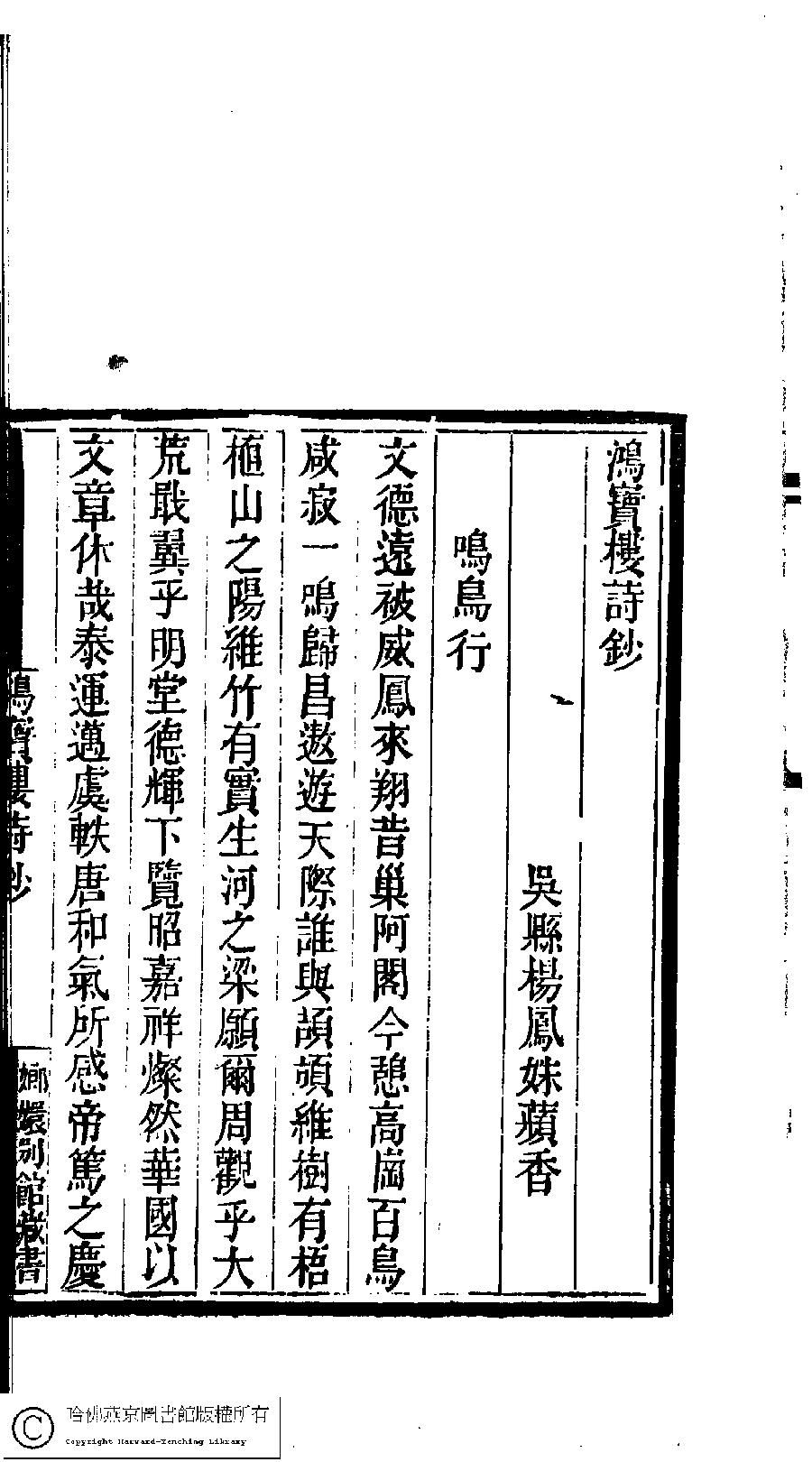 | 原書: 國朝閨閣詩鈔﹕一百種一百卷(清蔡殿齊輯): 鴻寶樓詩鈔﹕一卷 |