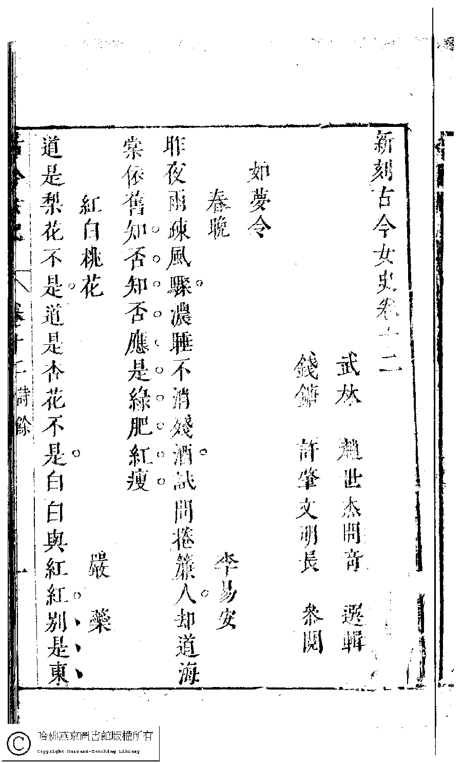 | 原書: 古今女史﹕十二卷﹐詩集﹕八卷﹐附姓氏字里詳節﹕一卷(明趙世杰輯) |