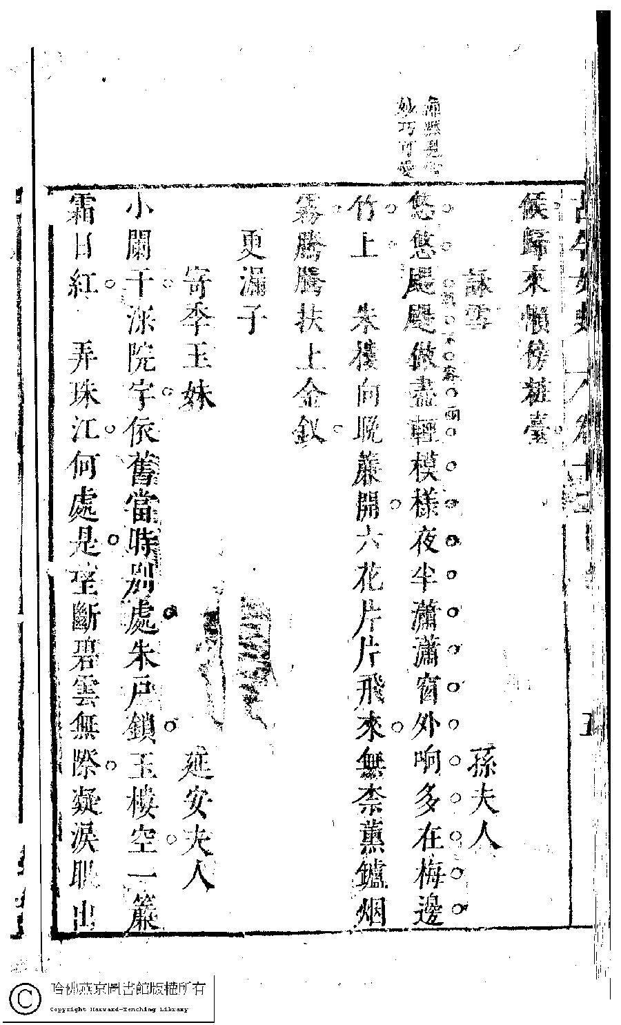 | (PRINT FRIENDLY VERSION) 古今女史﹕十二卷﹐詩集﹕八卷﹐附姓氏字里詳節﹕一卷(明趙世杰輯)。明崇禎(1628-1644)問奇閣刻本 ![]() 頁碼 : 12.6a | 点 击 放 大 | 古今女史﹕十二卷﹐詩集﹕八卷﹐附姓氏字里詳節﹕一卷(明趙世杰輯)。明崇禎(1628-1644)問奇閣刻本![]() 頁碼 : 12.5b | 点 击 放 大 | 返回 |