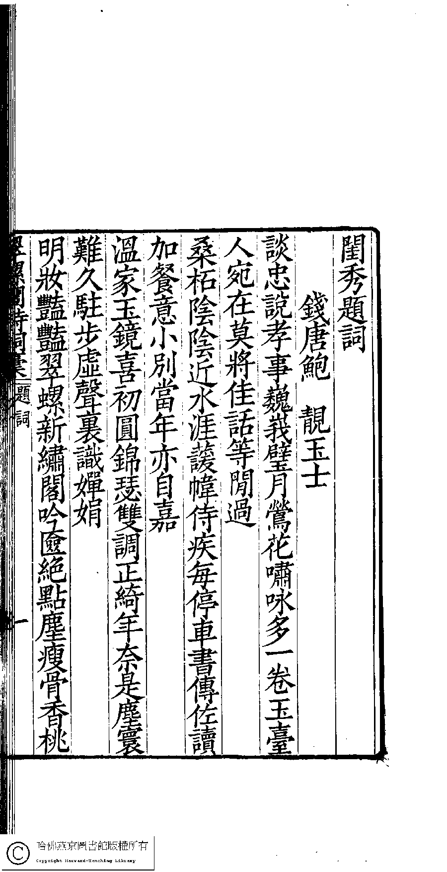 | (PRINT FRIENDLY VERSION) 翠螺閣詩詞稾﹕五卷﹐附舞鏡集﹕一卷(清凌祉媛撰)。清咸豐四年(1854)刻本。 ![]() 頁碼 : 題辭.1b | 点 击 放 大 | 翠螺閣詩詞稾﹕五卷﹐附舞鏡集﹕一卷(清凌祉媛撰)。清咸豐四年(1854)刻本。![]() 頁碼 : 題辭.1a | 点 击 放 大 | 返回 |