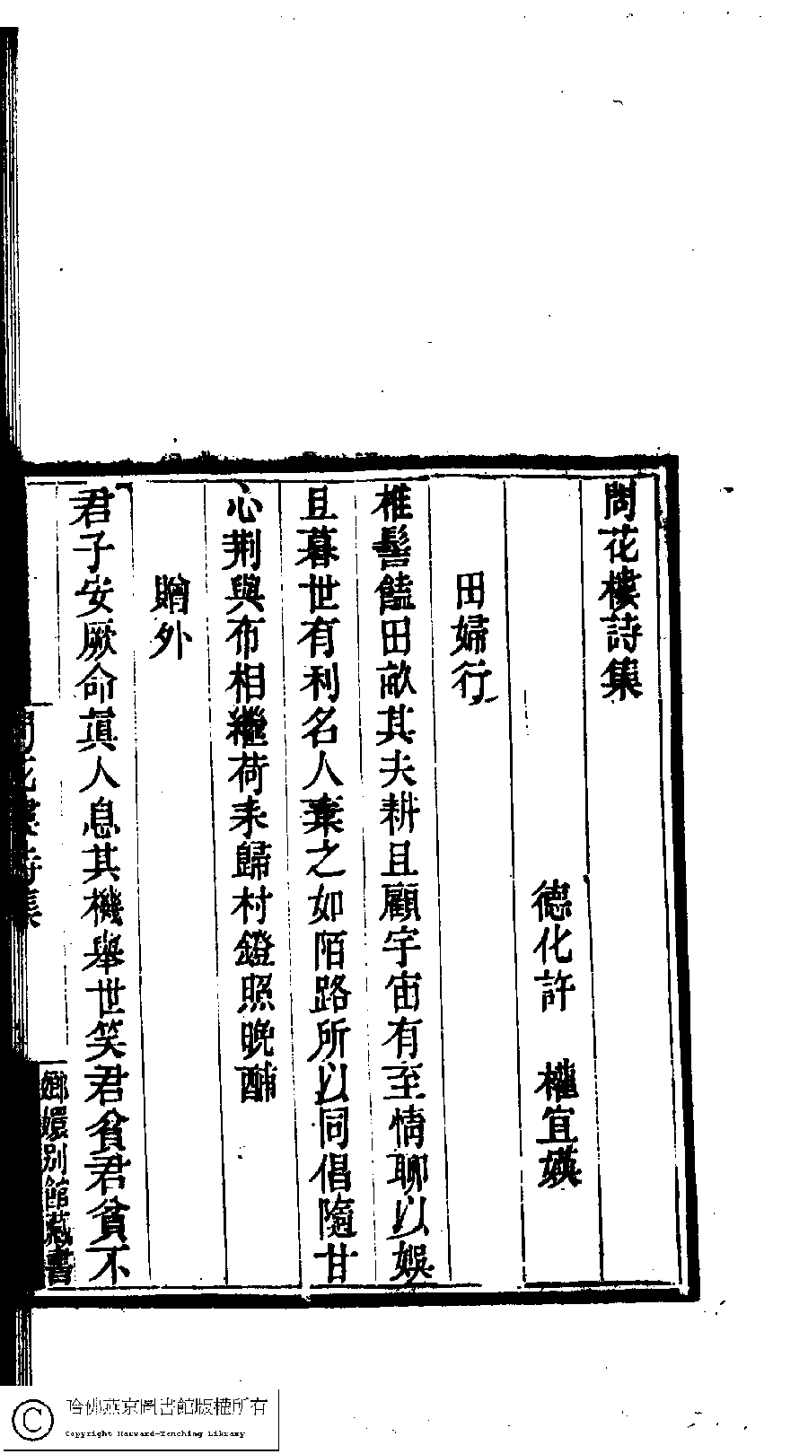 | 原書: 國朝閨閣詩鈔﹕一百種一百卷(清蔡殿齊輯): 問花樓詩集﹕一卷 |