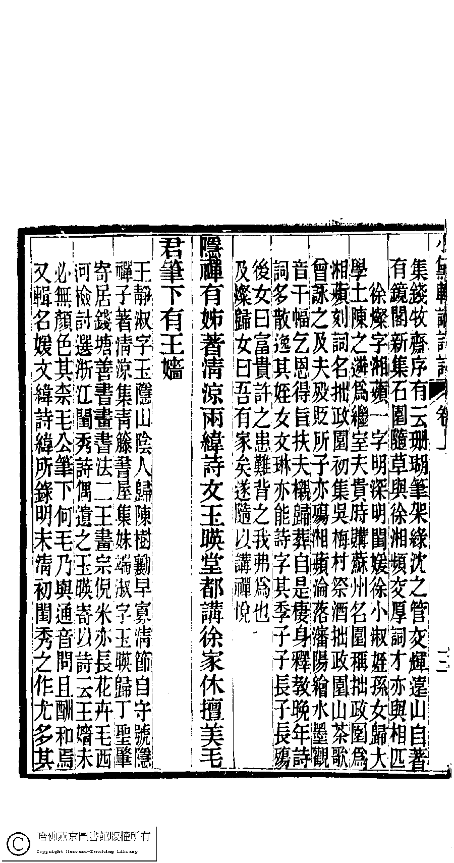 | (PRINT FRIENDLY VERSION) 陳孝女遺集﹕二卷﹔小黛軒論詩詩﹕二卷(清陳芸撰)。民國三年(1914)刻本 ![]() 頁碼 : 上.3b | 点 击 放 大 | 返回 |